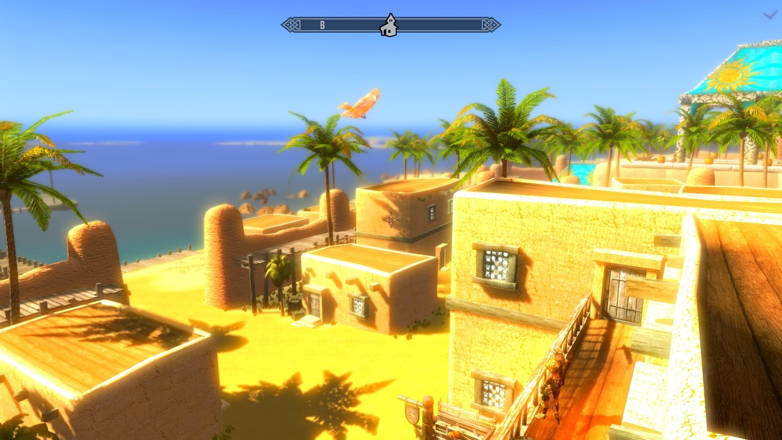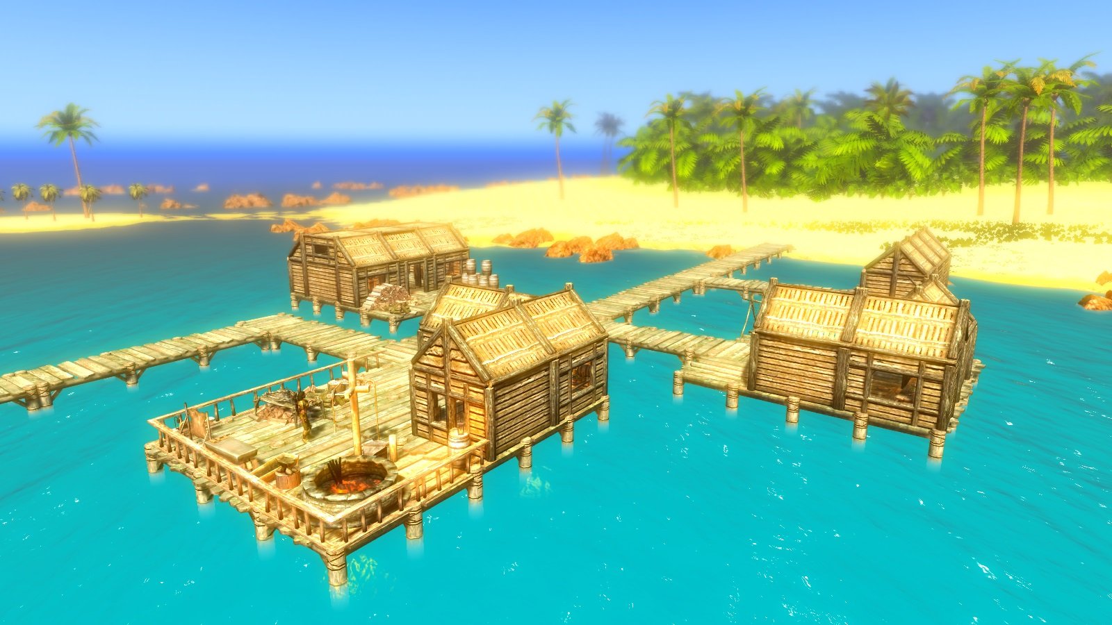 - Райские острова - регион с жарким тропическим климатом. Насчитывает 9 островов, 4 из которых частично населены Редгардами, а 5 - необитаемых островов, на которых есть дикие и опасные животные. На каждом из 4х населенных людьми островов есть поселения со свойственной южному климату архитектурой. У каждого поселения есть порт с кораблями, на которых можно отправиться в то или иное поселение (пока это реализовано довольно примитивно, но эффективно). Кроме того, абсолютно все острова таят много фишек для исследования.