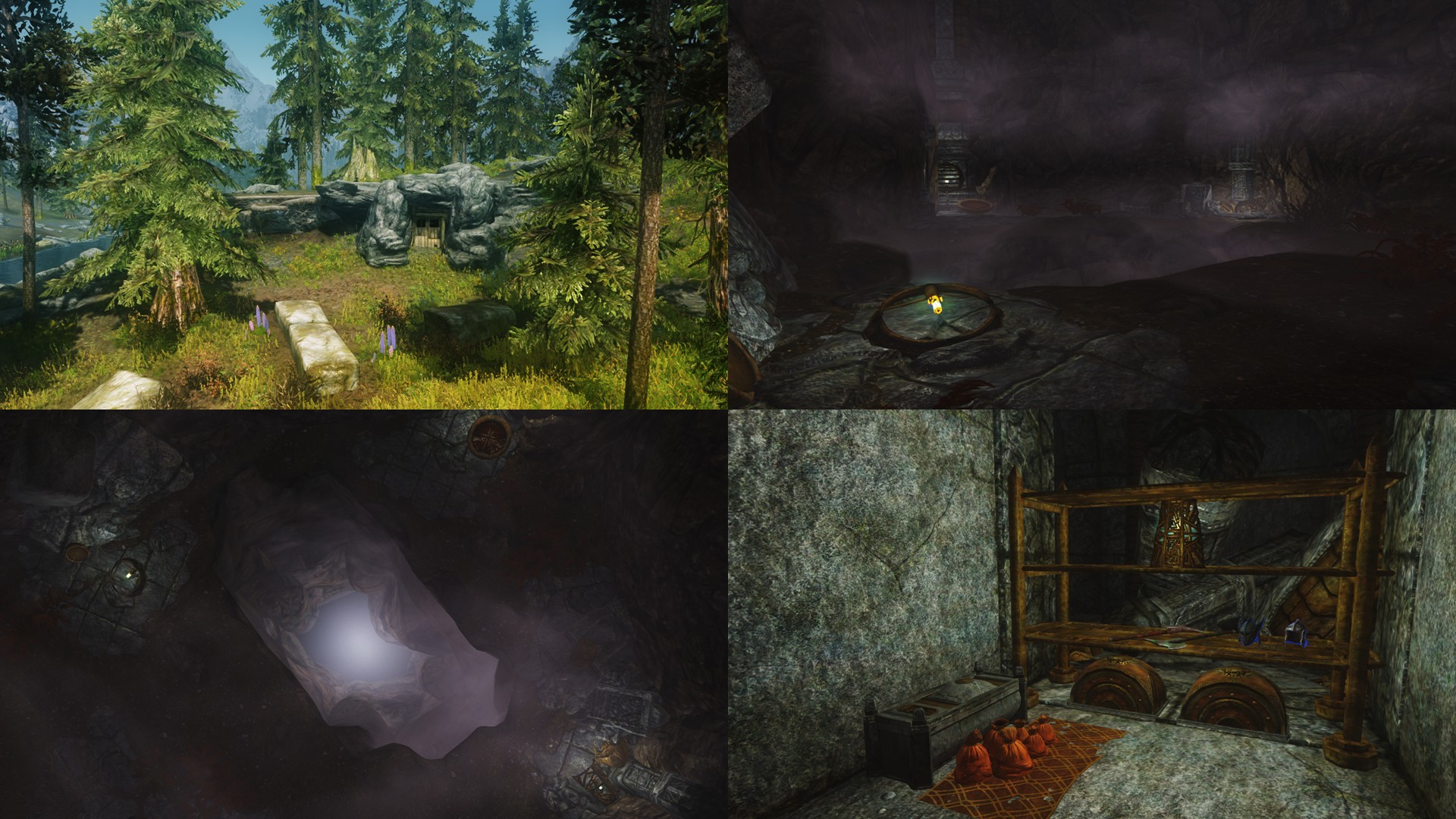 Мод добавляет в игру 11 новых подземелий, которые интегрированы в систему Генерируемых квестов (Radiant AI). У большинство radiant квестов из оригинальной игры есть набор из десятка возможных мест, куда вы можете быть направлены для выполнения квеста. Мод добавляет к этим наборам новые подземелья. Никаких новых квестов не добавляется. В подземельях обитают либо бандиты, либо гиганты.