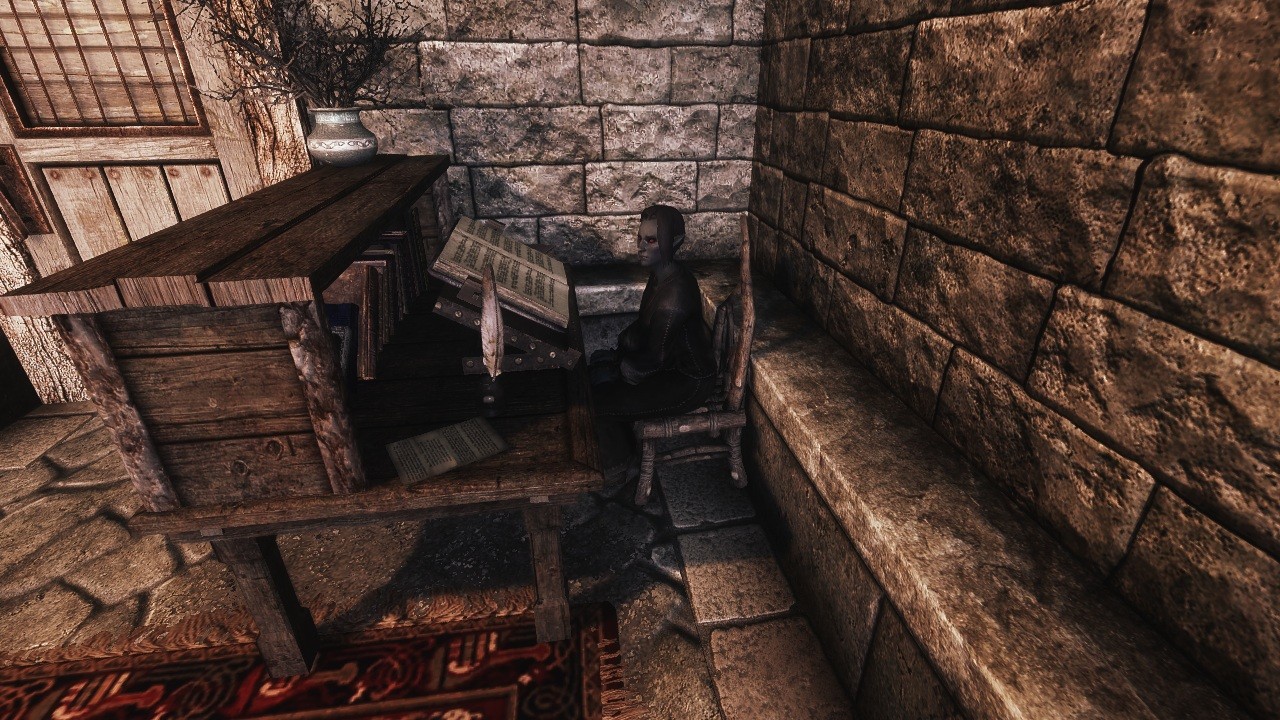 Книжная лавка с большим ассортиментом, где можно найти не только книги из DLC, но еще и новые книги из Морровинда (Книга восхода и заката, Вивек и Мефала, Тишина, Секреты Редоранской кухни, Гимны Пепельных Земель, Четыре жениха Бениты, полная серия Уроков Вивека и т.д.)