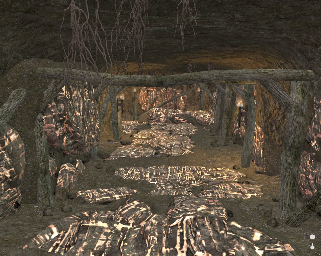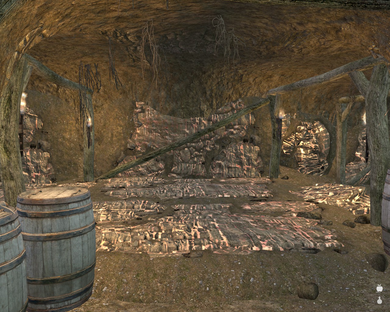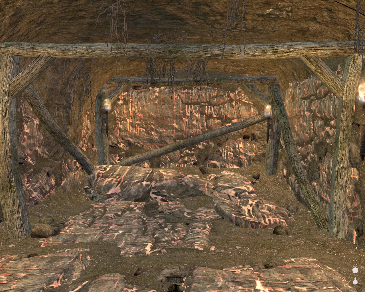 Многие, я думаю, сталкивались с нехваткой железа, корунда или стали при строительстве поместий в Скайриме. Я захотел немного исправить это. Теперь около поместья «Озерное» находится шахта, в которой 16 корундовых и 23 железных жилы. И Вы можете прямо на месте добыть ее, чтобы не бегать по другим шахтам или торговцам.