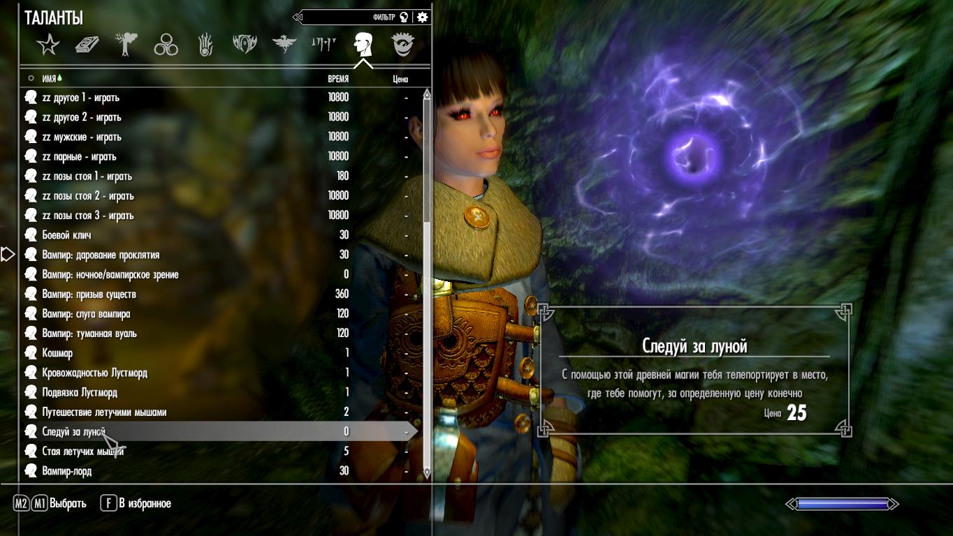 При первой загрузке вам добавится заклинание «Следуй за луной». Оно вас телепортирует в локацию.