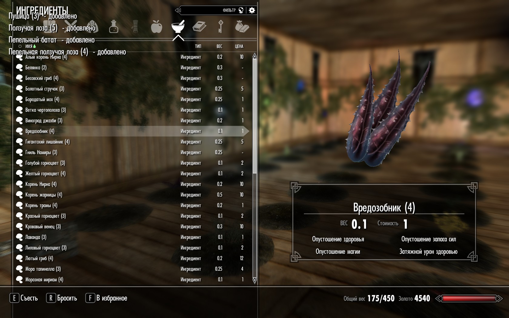 Мод добавляет в игру том заклинания, который перенесет нас в магическую оранжерею, где мы можем выращивать алхимические ингредиенты и спокойно заниматься зельеварением поднимая уровень алхимии.