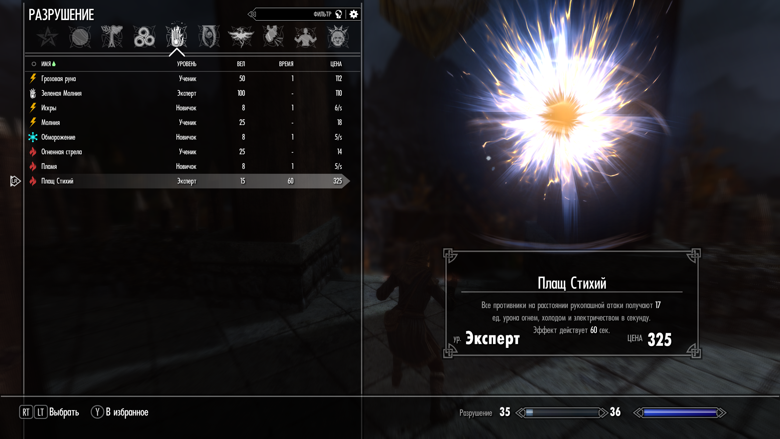 Плащ Стихий - Покрывает заклинателя огнём, холодом и электричеством. Наносит урон всем врагам кто посмеет подойти к заклинателю на растоянии удара.