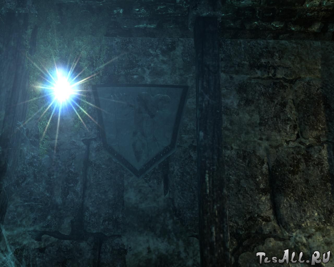 Зайдите в Мидден через люк во дворе Коллегии. Идите прямо, пока не увидите комнату с водопадом справа от вас. Спуститесь и увидите два выхода из комнаты. Вам нужен тот, где нет двери. Идите по коридору дальше. Вы придёте в комнату, в углу которой будет светиться волшебный огонёк. Ищите на стене рядом с ним. Примечание: подобные огоньки светятся только когда подойдёте достаточно близко. Не проморгайте