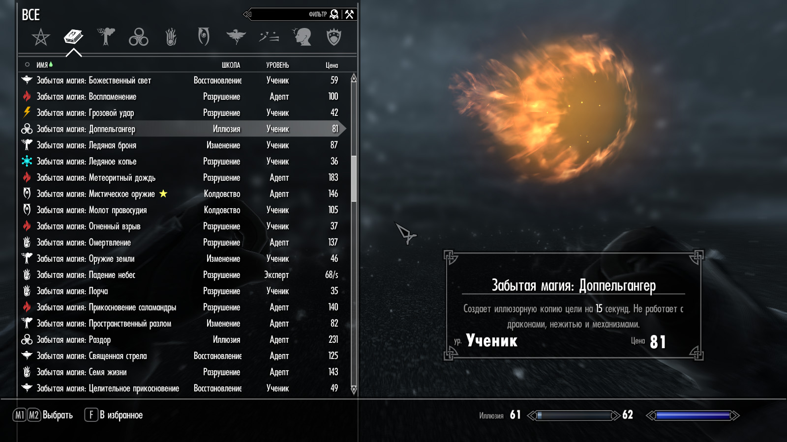 Пиромант: Огненный взрыв, Воспламенение, Метеоритный дождь, Доппельгангер, Прикосновение саламандры, Удар феникса