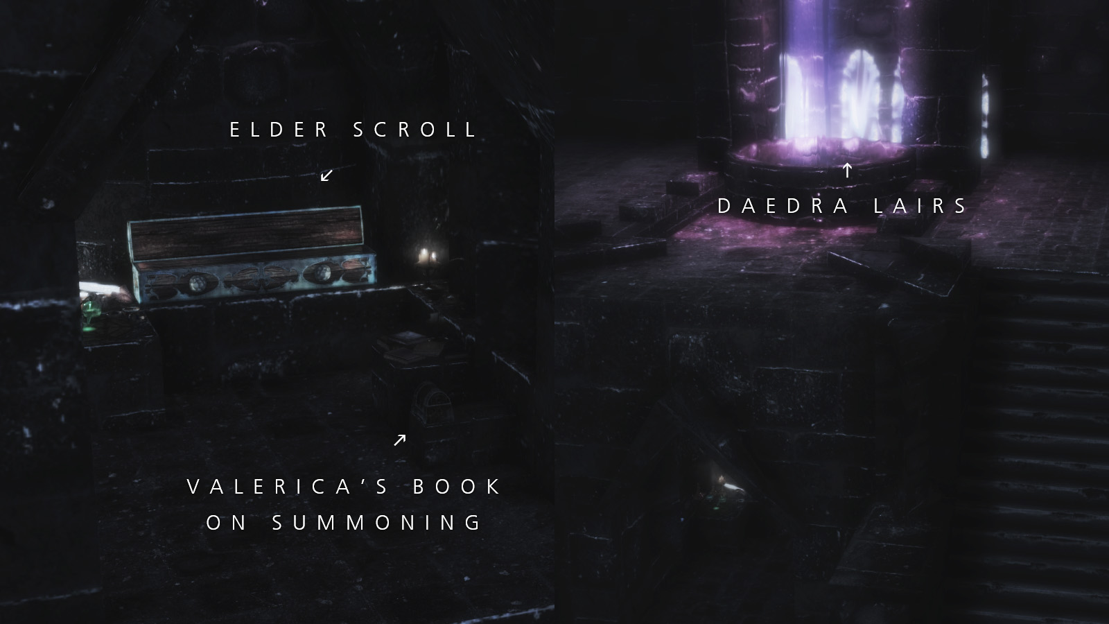 Все предметы могут быть найдены внутри 3 сундуков в Каирне Душ (в Могильнике, прямо над уголком, где Валерика держит Древний Свиток).