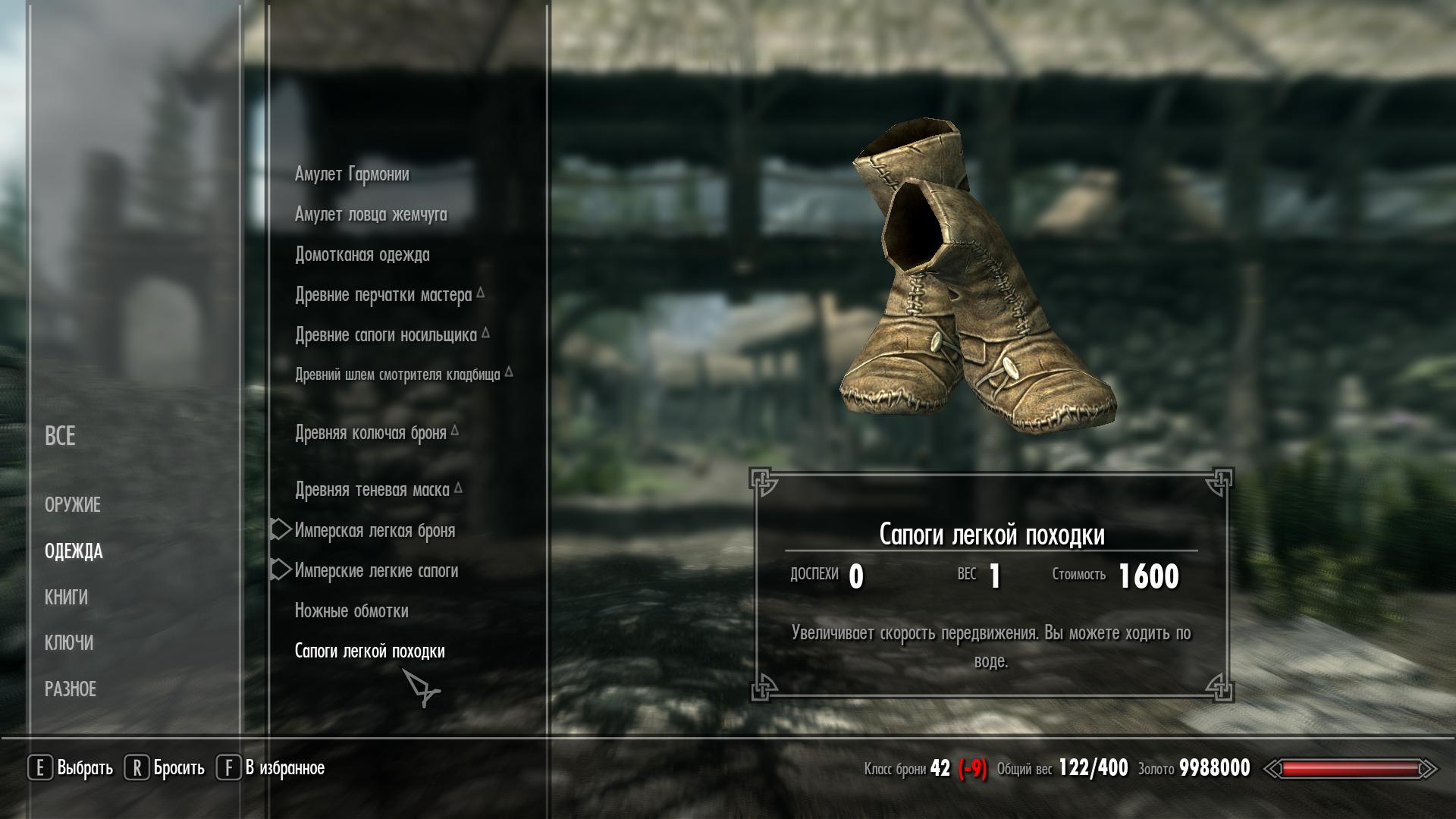 - Сапоги легкой походки - увеличивает скорость бега. Позволяет ходить по воде;