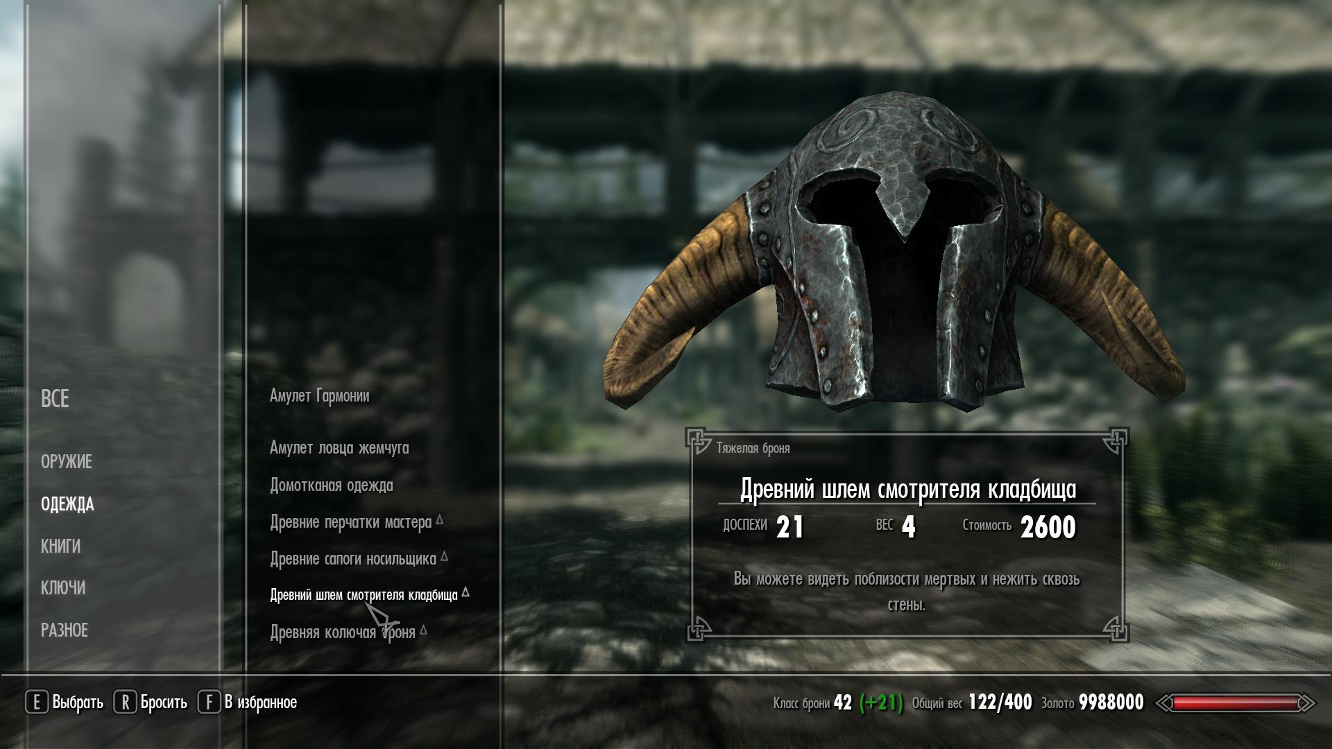 - Древний шлем смотрителя кладбища - позволяет обнаружить нежить поблизости;