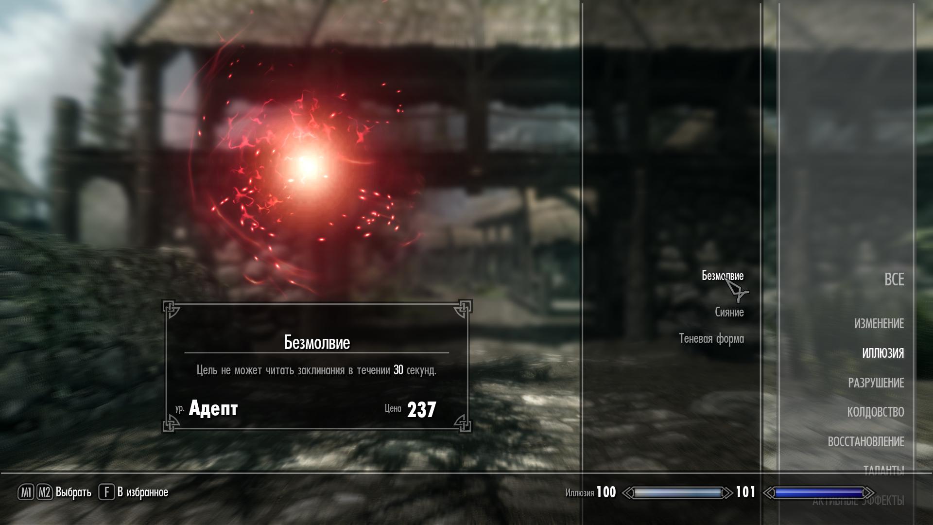 - Безмолвие - пока действует эффект цель не может читать заклинания;