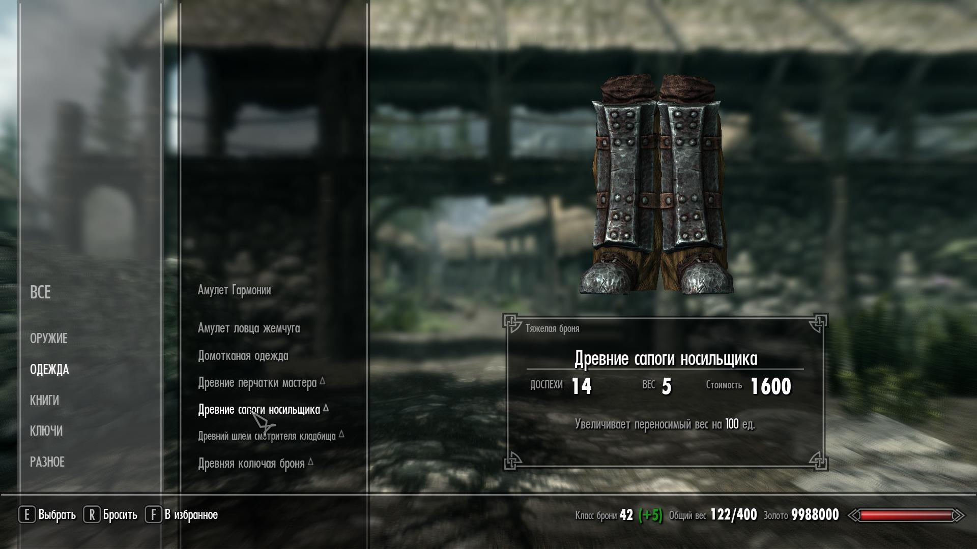 - Древние сапоги носильщика - увеличивает грузоподъемность;