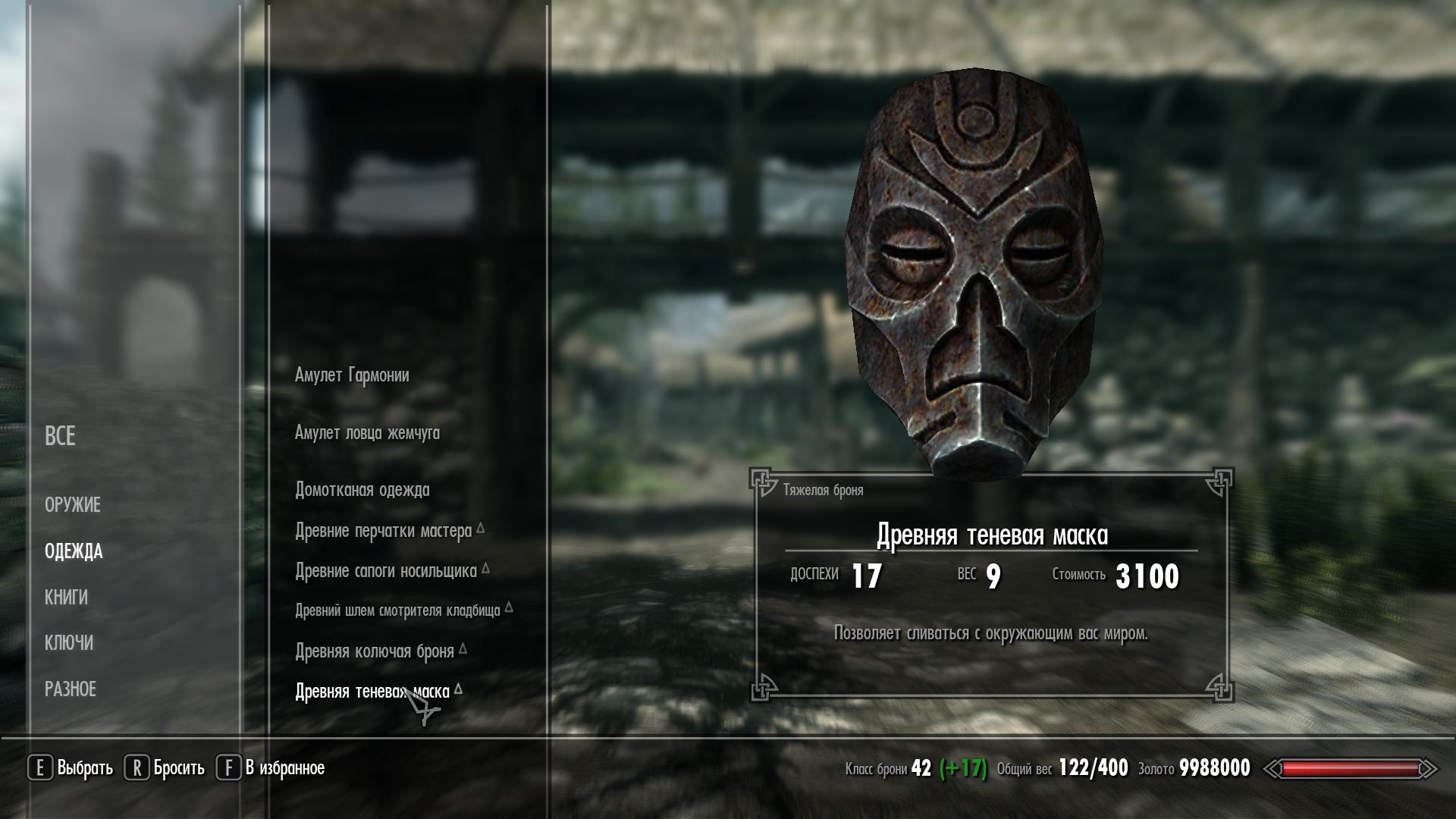 - Древняя теневая маска - позволяюет сливаться с окружением;