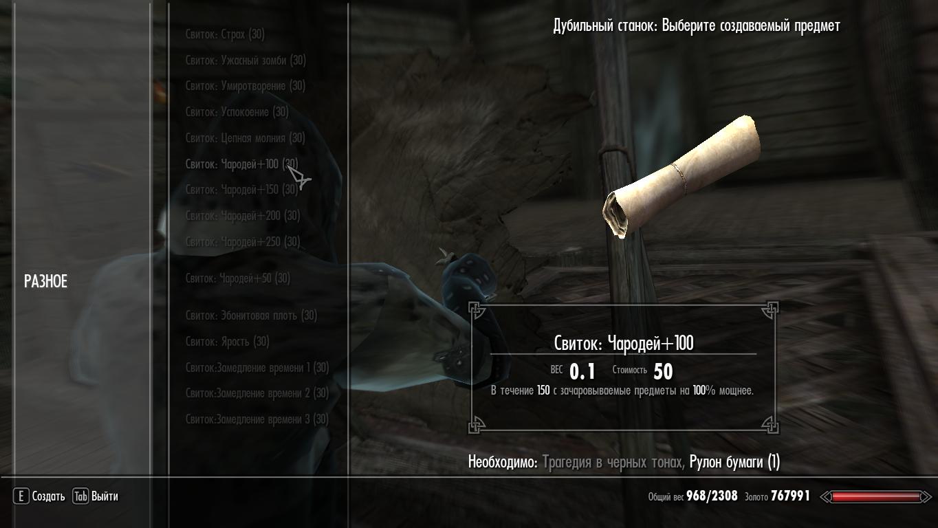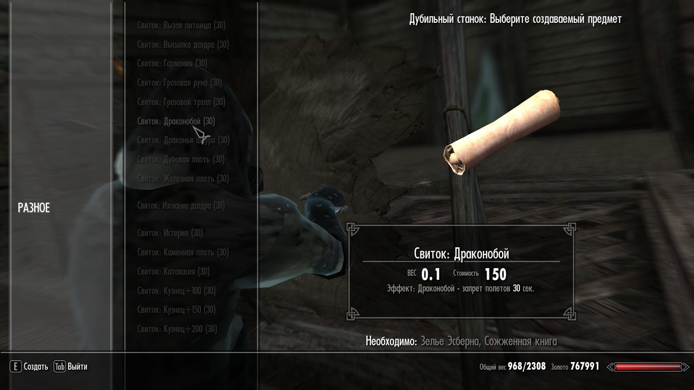 Мод добавляет: рецепты для крафта множества свитков из томов заклинаний и навыков(алхимик,кузнец,зачарователь) и три новых свитка-ледяное копьё, замедление времени и драконобой. Крафт драконобоя весьма сложен и Вы,к тому-же, должны быть Клинком.