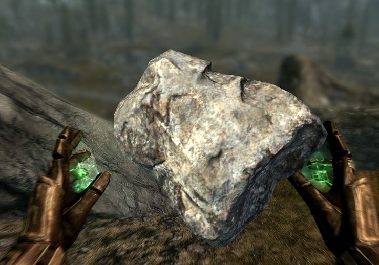 Извлечение руды работает, как и оригинальное заклинание из изначального мода, Заклинание продается как простая книга в Ривервуде или у магов-торговцев