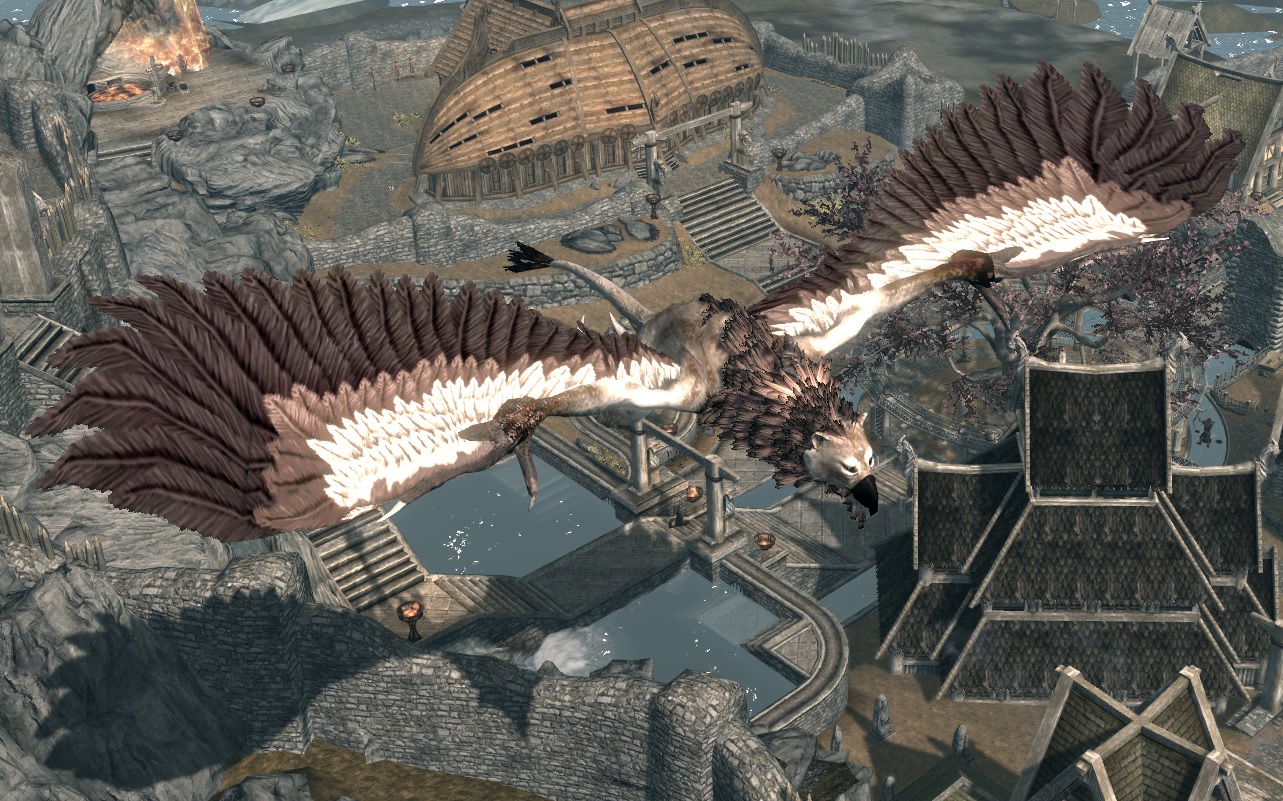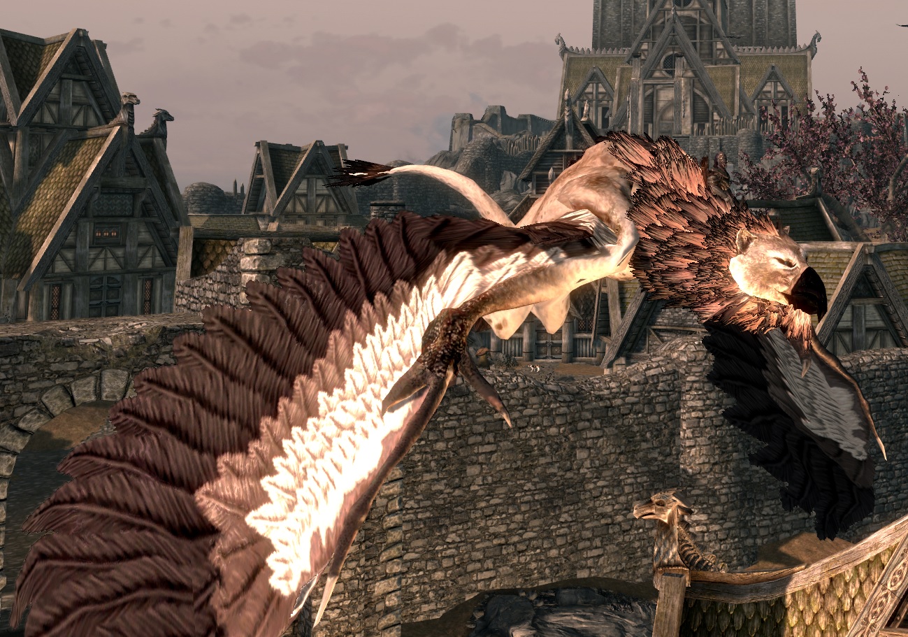 Добавляет в Скайрим 6 видов летающих грифонов