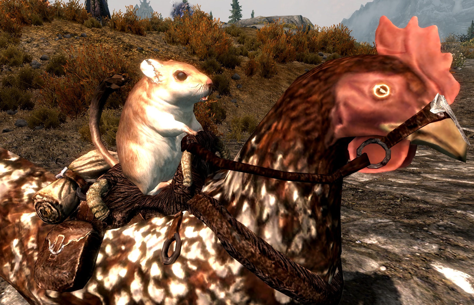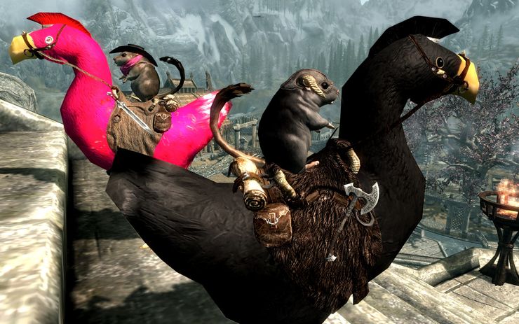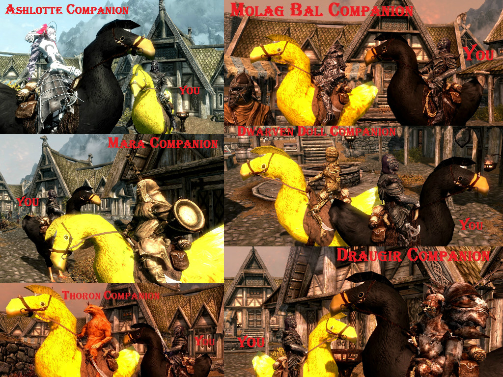 Некоторые курицы, песчанки и чокобо могут следовать за вами (у меня они даже на Солстхейм последовали). Призванные существа будут вам помогать в бою, вы можете на них ездить, а маленькие существа будут серьезно вредить вашим врагам.