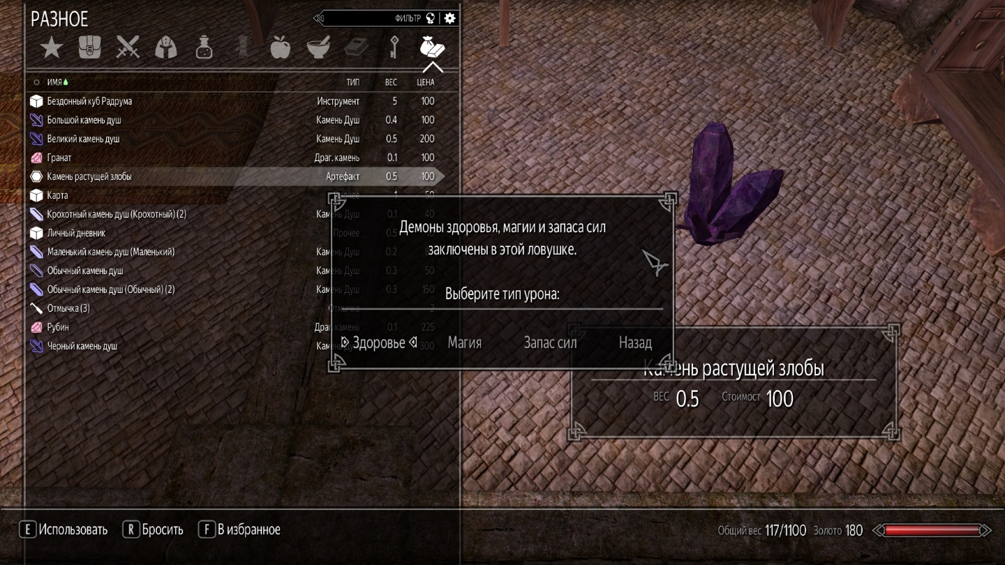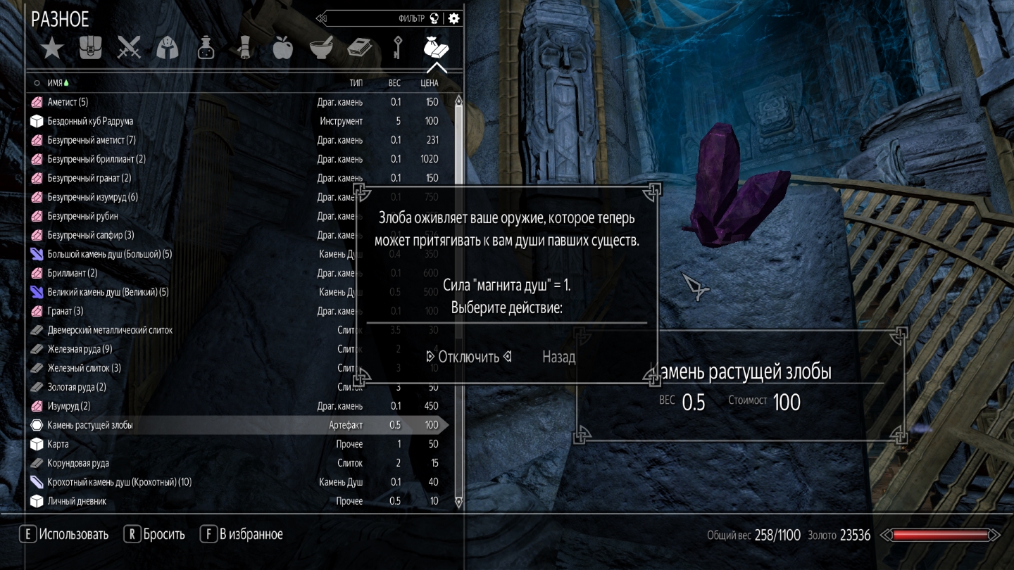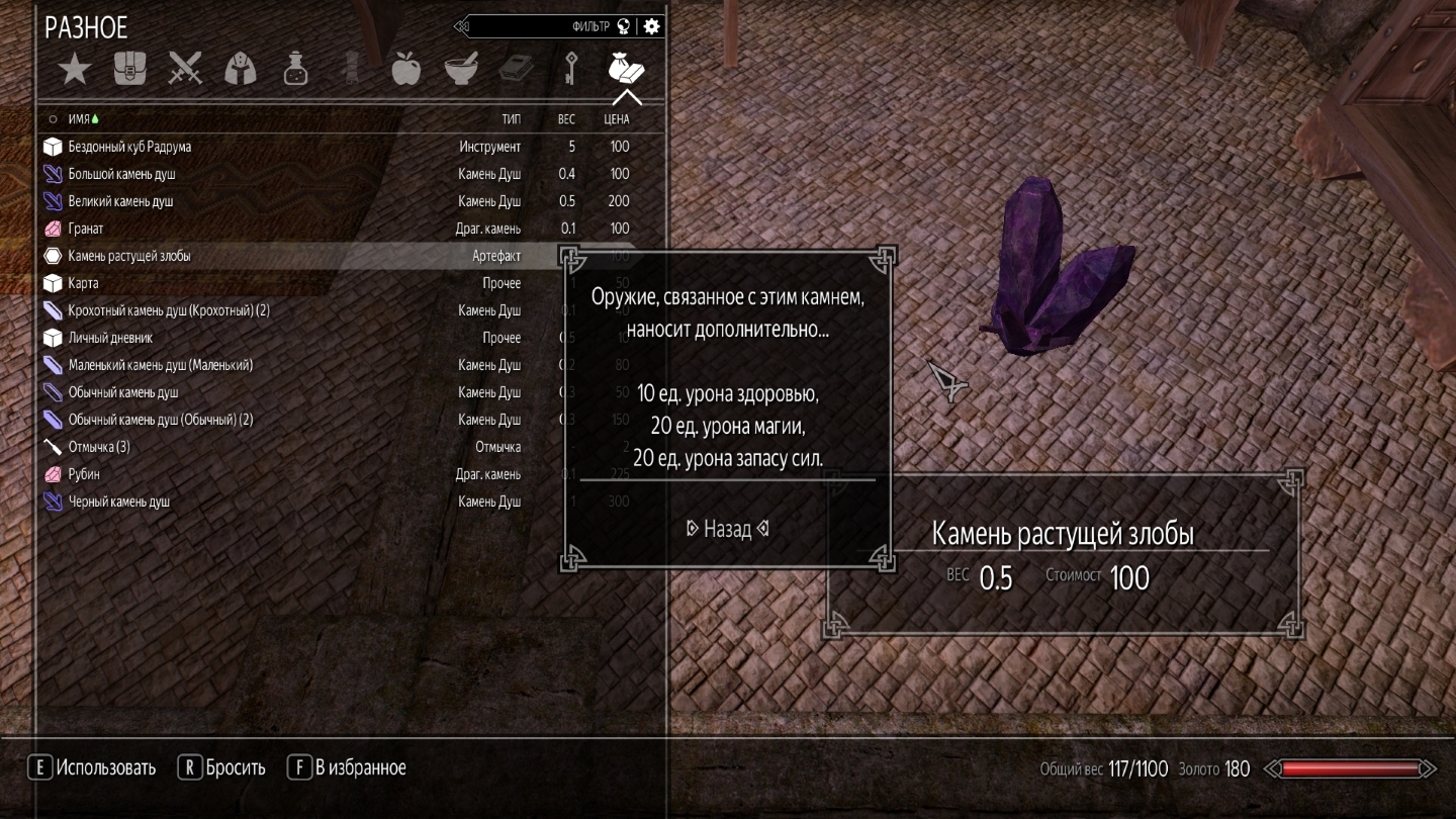 ➔ Камень можно использовать только после первого убийства существа оружием с этим зачарованием.