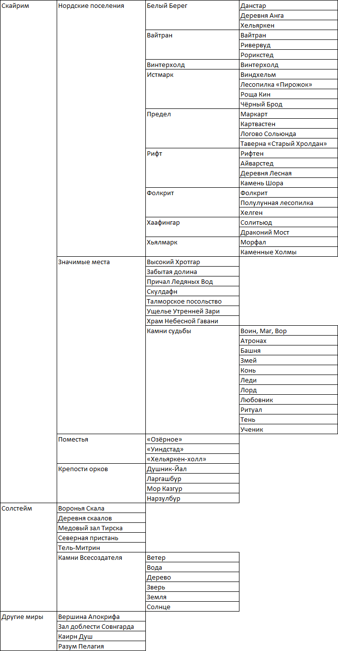 Список всех локаций