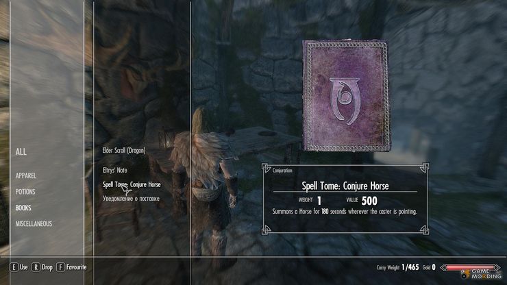 Мод добавляет заклинание призыва призрачной лошади. Вы найдете том с заклинанием в заброщенной тюрьме на юго-западе от Виндхельма (подробнее см. скриншоты).