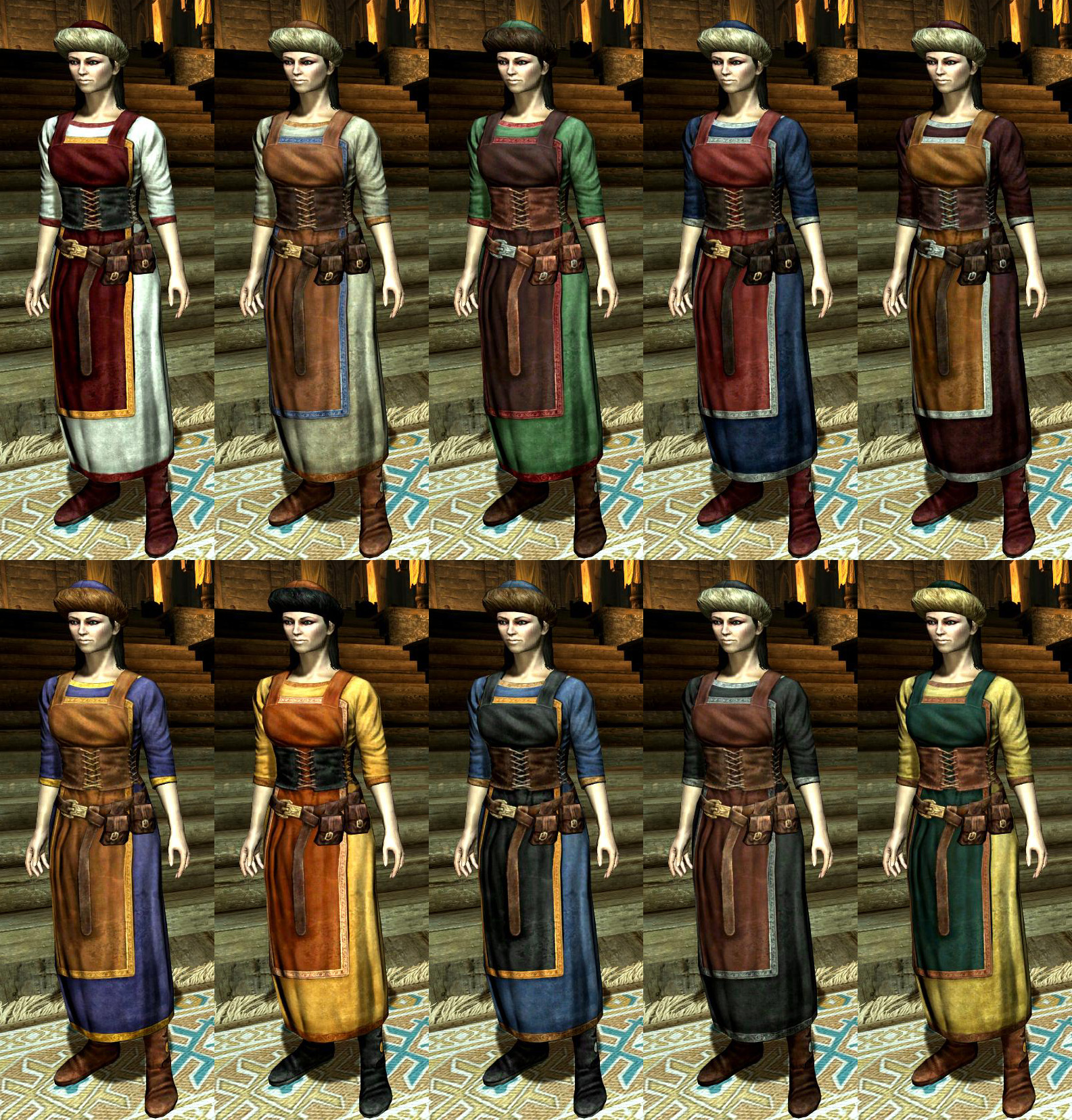 Этот мод добавляет несколько вариантов одежды, предназначенных для жителей среднего класса (или тех, кто просто любит простую, практичную моду). Все предметы поддерживают оба пола и все расы.