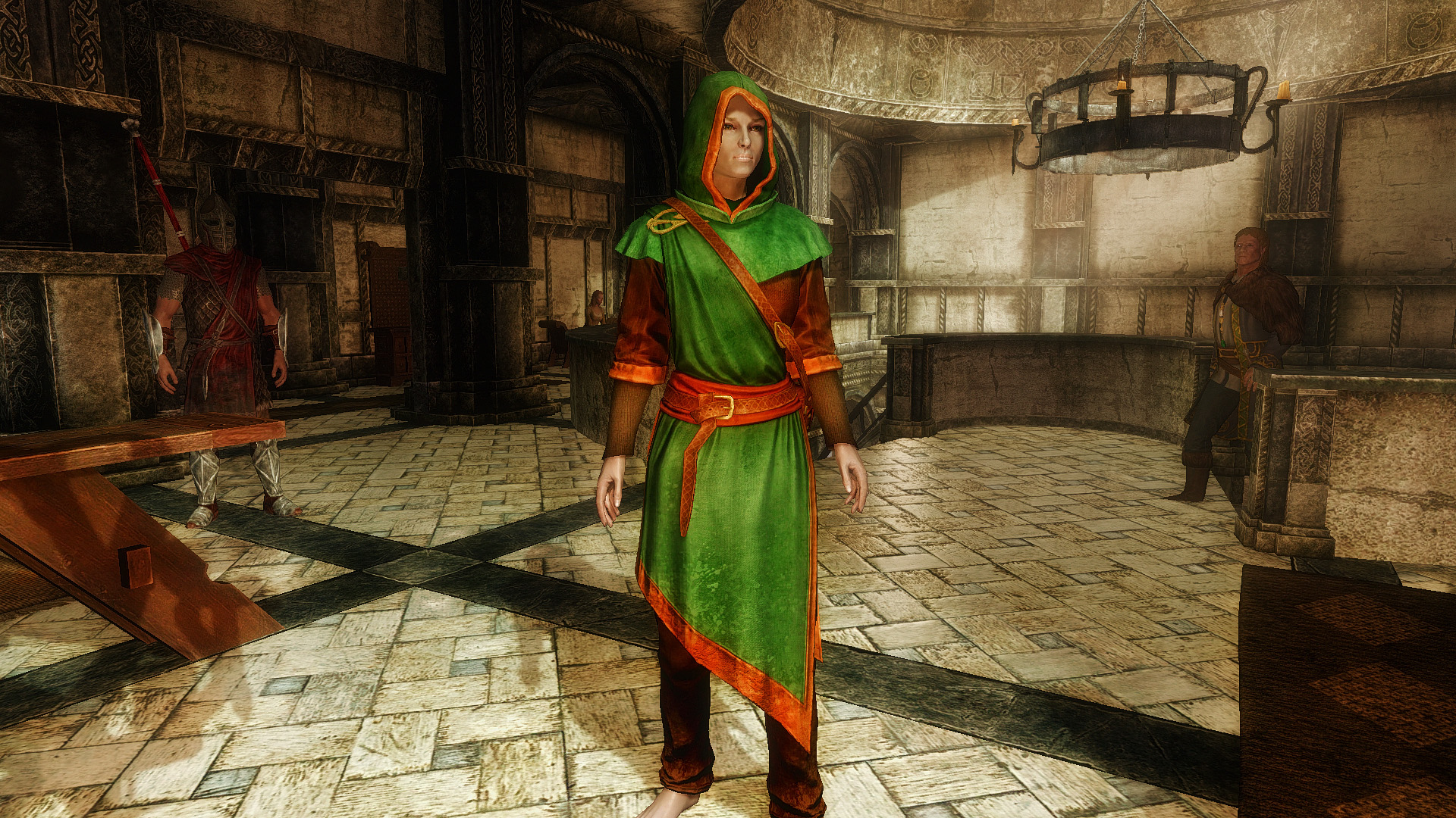 • два данмерских наряда (с капюшоном и без него, 8 вариантов цвета каждого) с соответствующей обувью (4 варианта цвета).