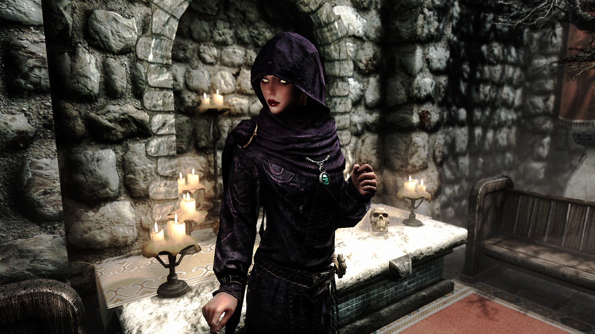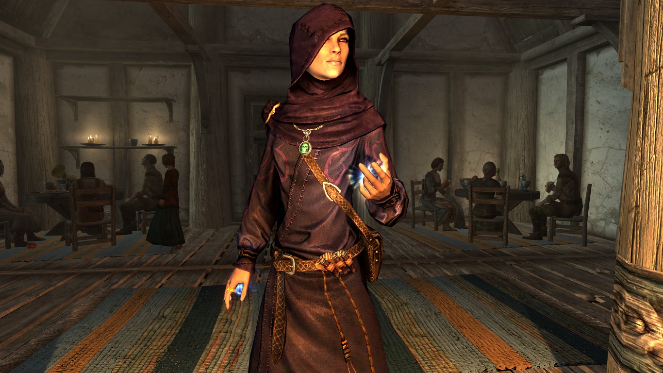 Красивый сет мантия + капюшон (не съёмный), копирующий свойства Амулета Некроманта. Подходит для всех полов и рас (для ванильных тел). Одеяние уникально и существует только в одном экземпляре.