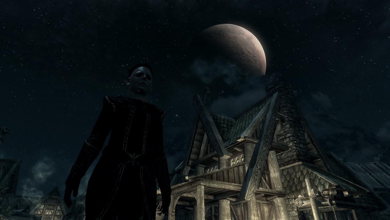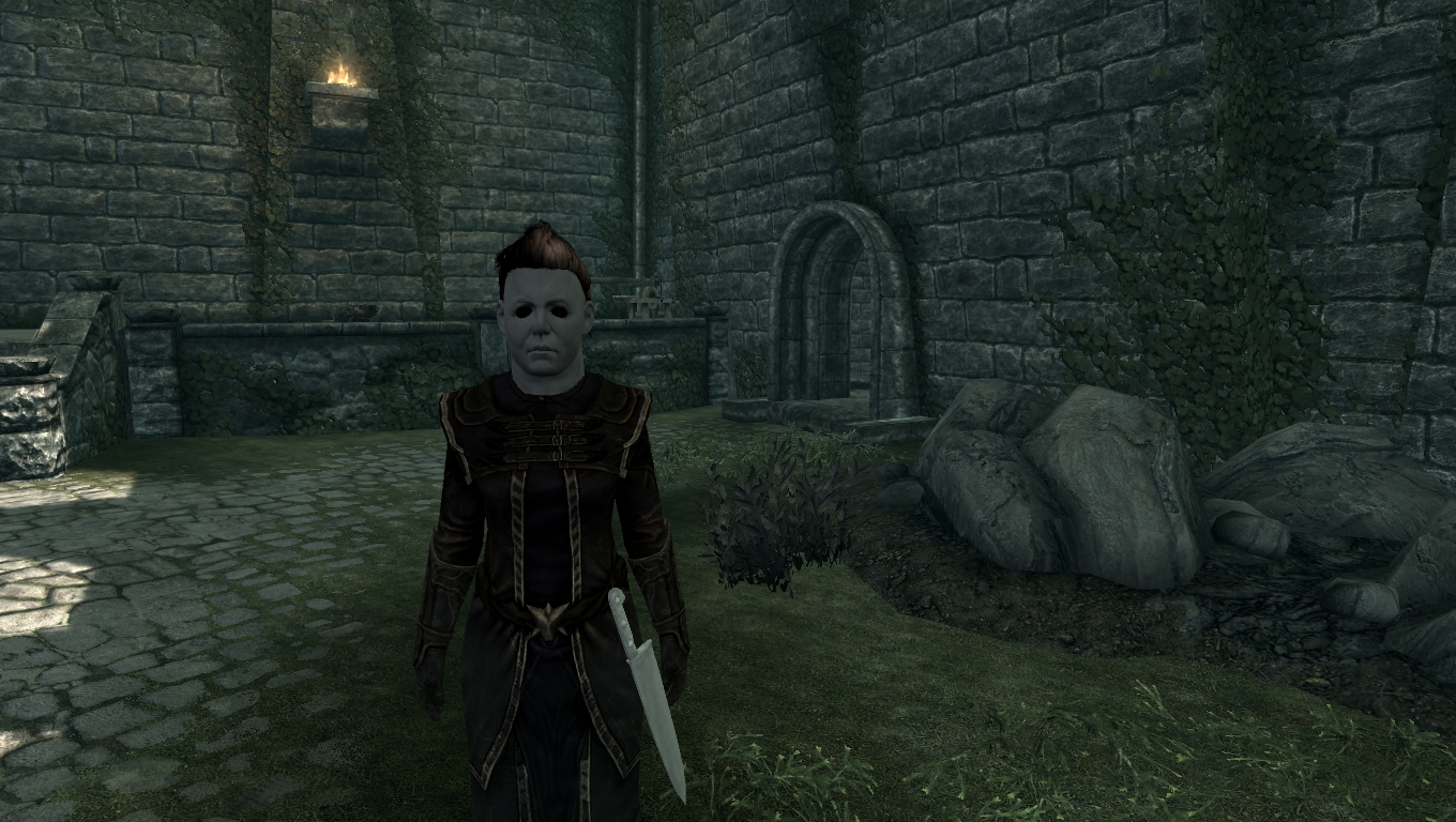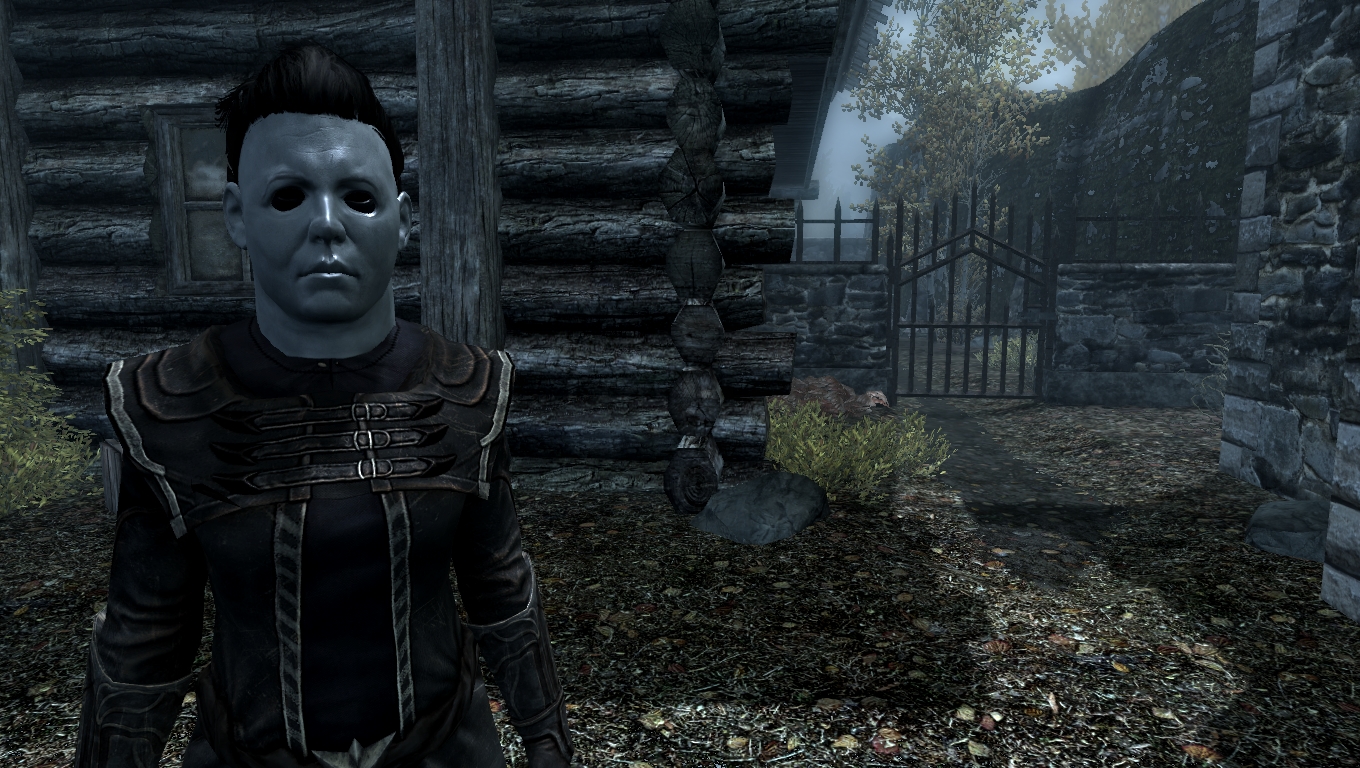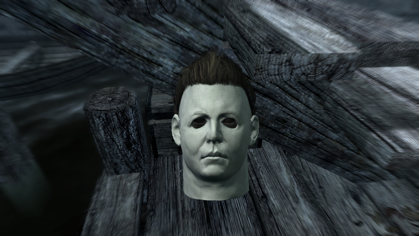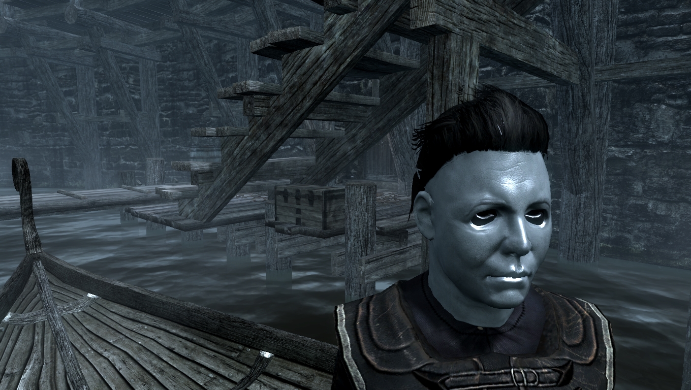 Ищите сундук с вещами Майкла Майерса в городе Рифтен (район каналов). Также маску можно получить с помощью программы AddItemMenu.