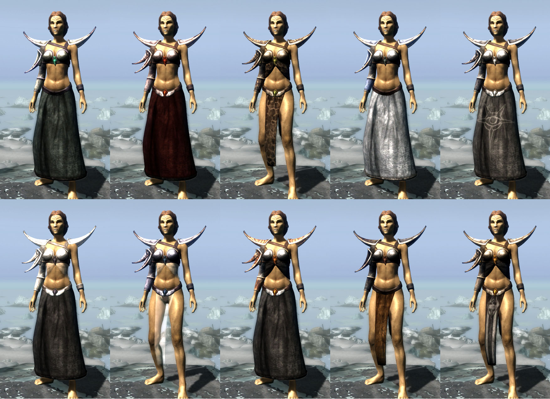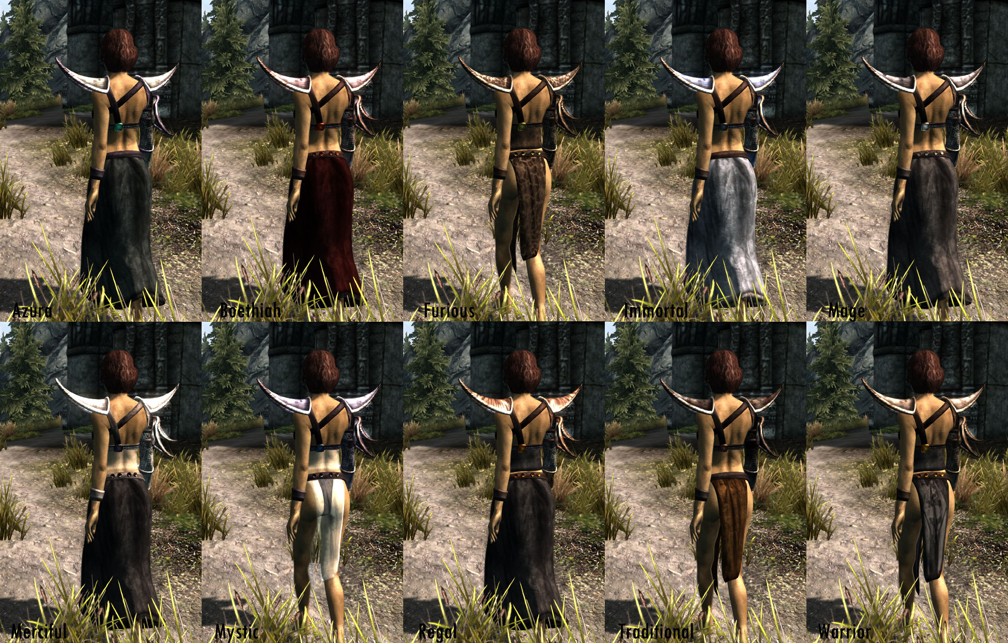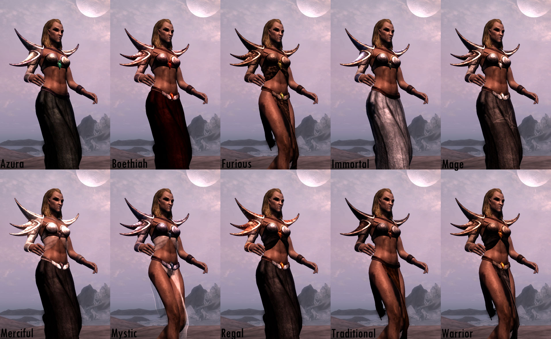 Плагин добавляет 10 различных вариантов одежды Альмалексии, которая доступна в зачарованном и незачарованном виде.
