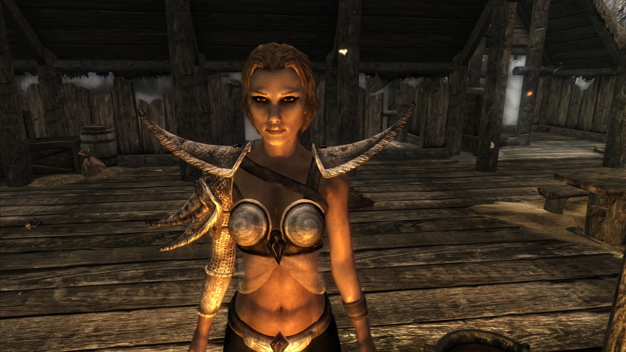 Альмалексия не носит сапог и перчаток, но вы можете надеть их невидимые версии, чтобы не потерять характеристики. Если вы не особо верите в "кимерскую магию", защищающую от холода и снега, в плагине присутствуют пара туфель, подходящих к броне.
