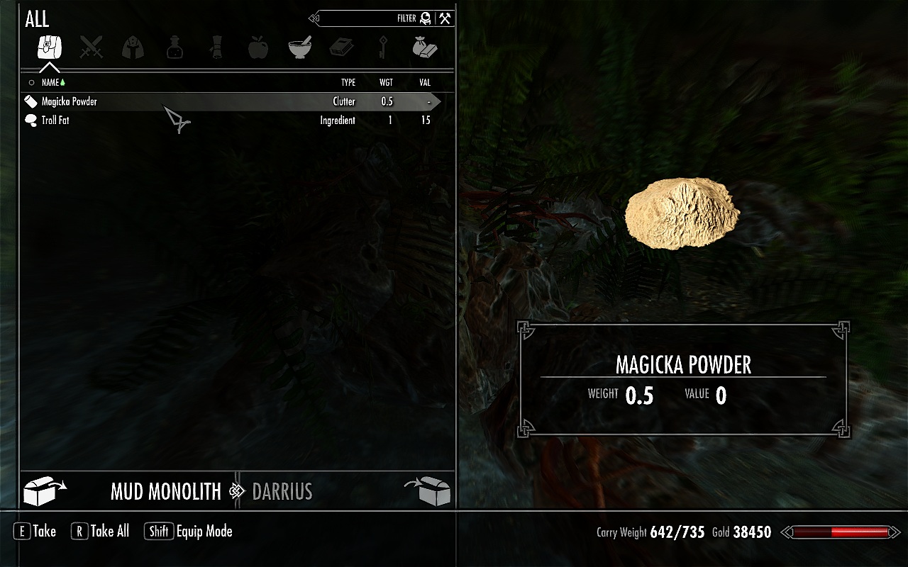 Зачарование рюкзака добавит вам 70 пунктов переносимого веса и 15 пунктов защиты от магии. Рюкзак использует слот 47.