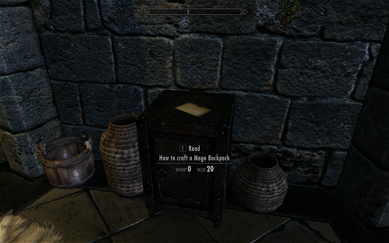 Все о рюкзаке и его изготовлении вы найдете в записке, которая находится в покоях Архимага в Коллегии Винтерхолда.