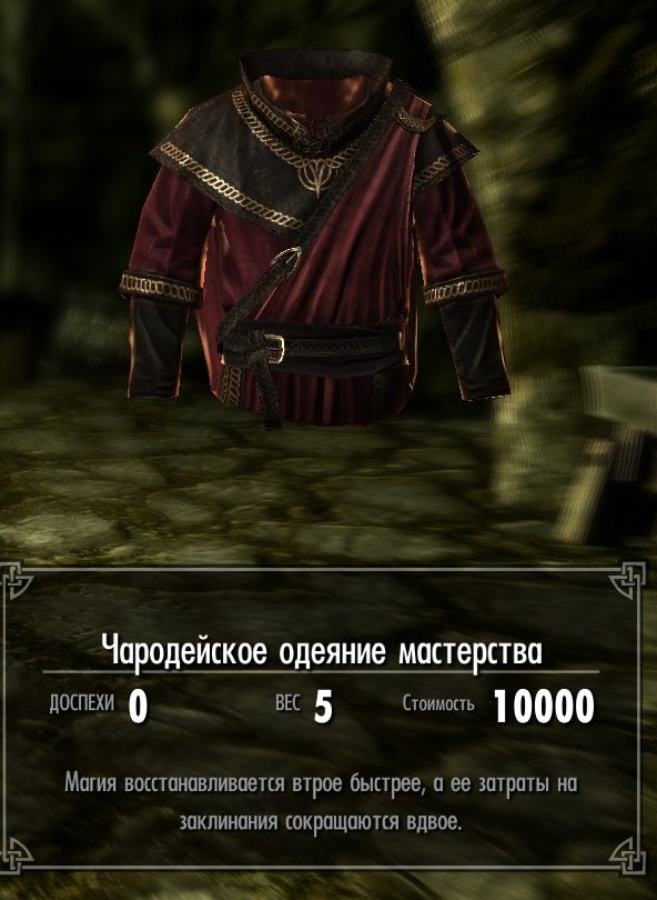 Плагин добавляет в игру зачарованные капюшон, одеяние и сапоги мага: чародейское одеяние мастерства, чародейские сапоги грации и чародейский капюшон стойкости с новыми текстурами, приличествующими одежде могущественного мага. Модель только мужская.