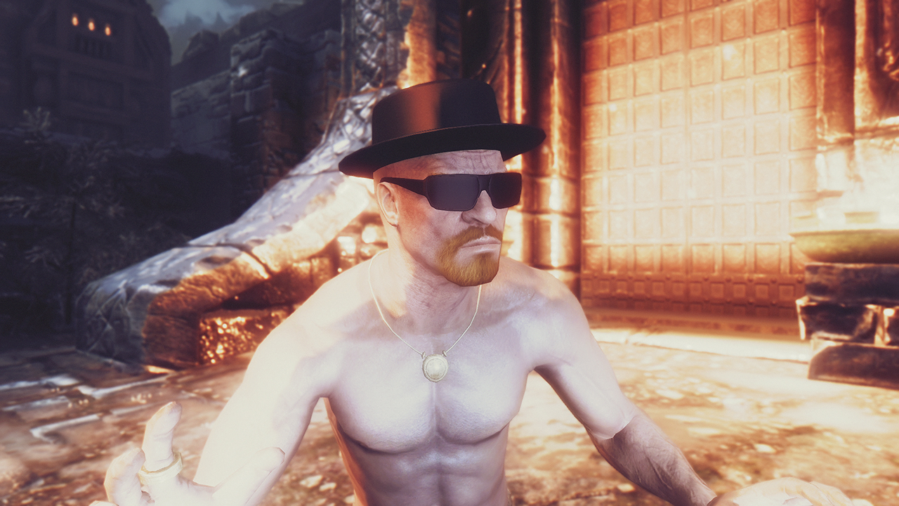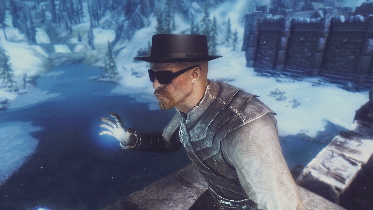 Добавляет в Скайрим шляпу и очки Уолтера Уйата, также известного как Хайзенберг. Это шутливый мод в честь выходящего уже на этой неделе продолжения великолепного сериала "Во все тяжкие". Предметы находятся внутри сейфа, расположенного у здания стражников в Вайтране. Очки можно надеть вместе с капюшоном.