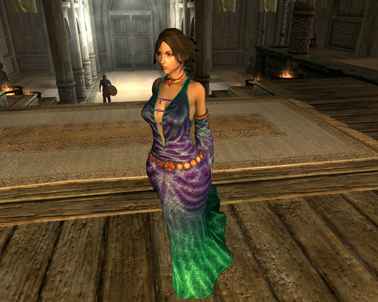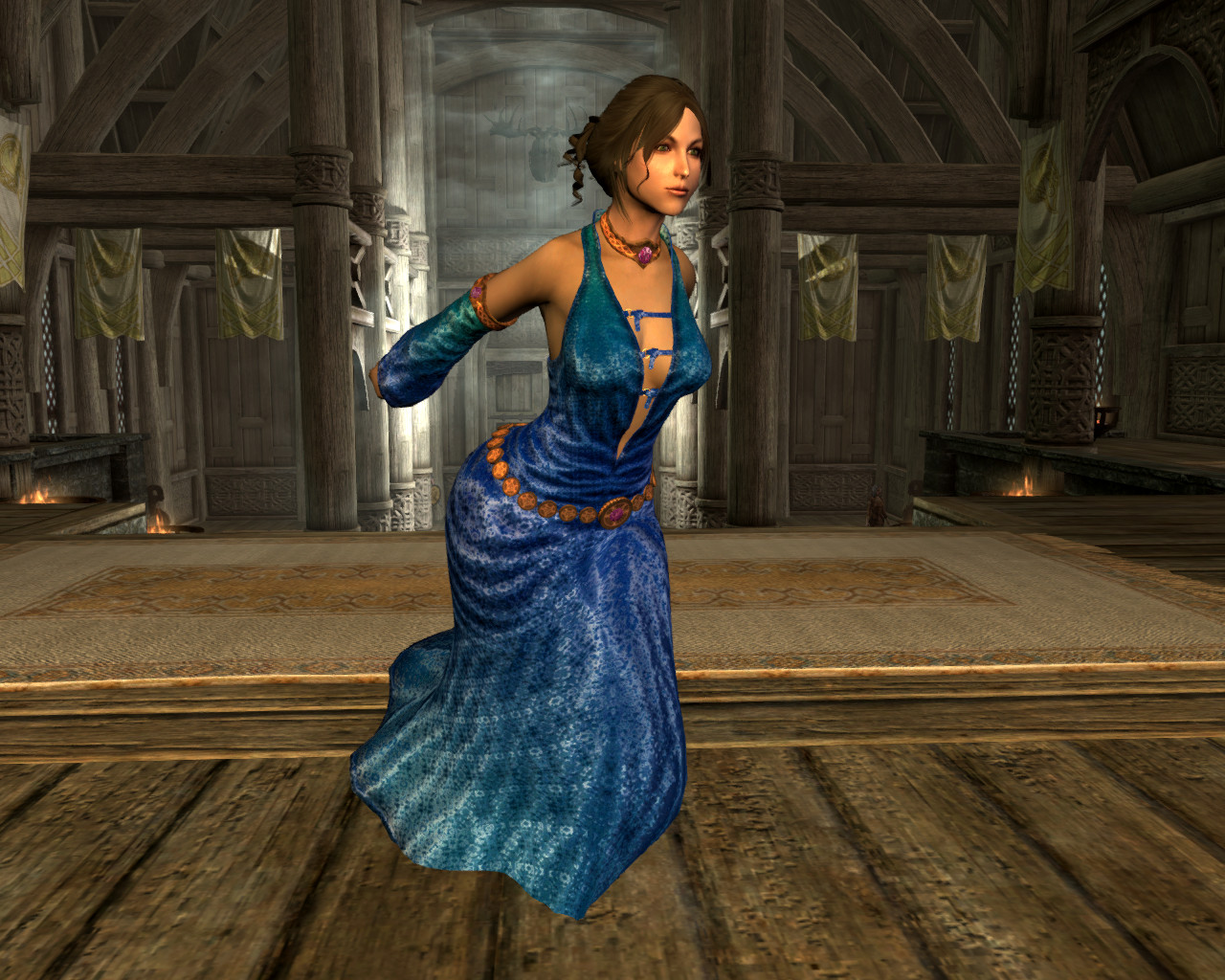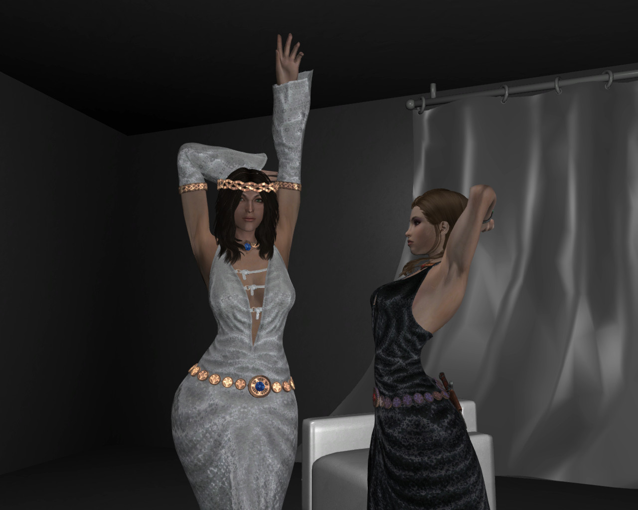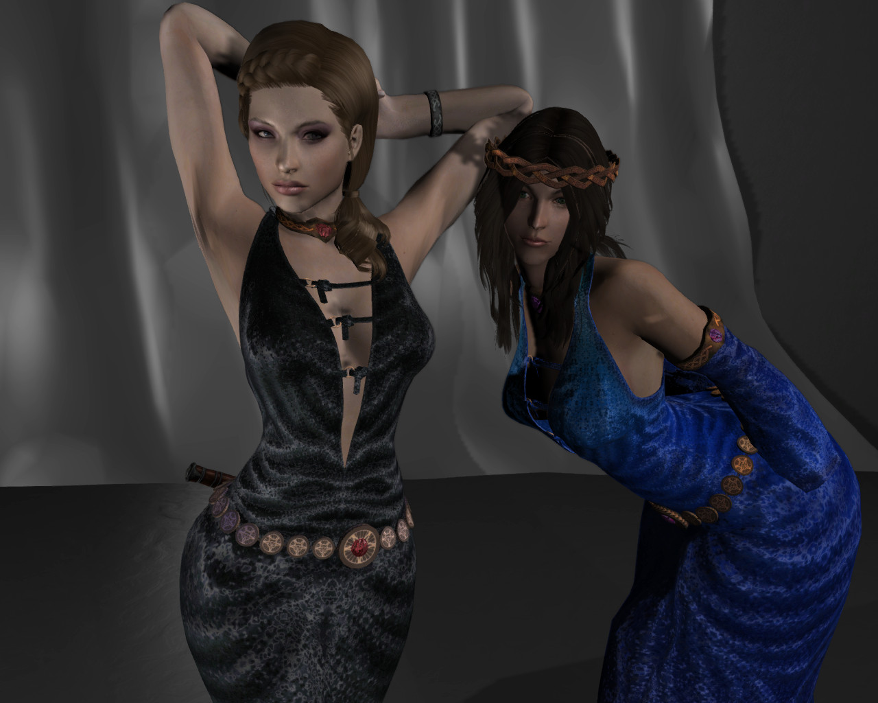 Я так понимаю, автор, решив избавиться от клиппинга ног с подолом, поступил радикально - убрал ноги. Блестяще. Уж лучше бы оставил. Хрен с ним, с клиппингом, для статичных скриншотов вполне сойдет.