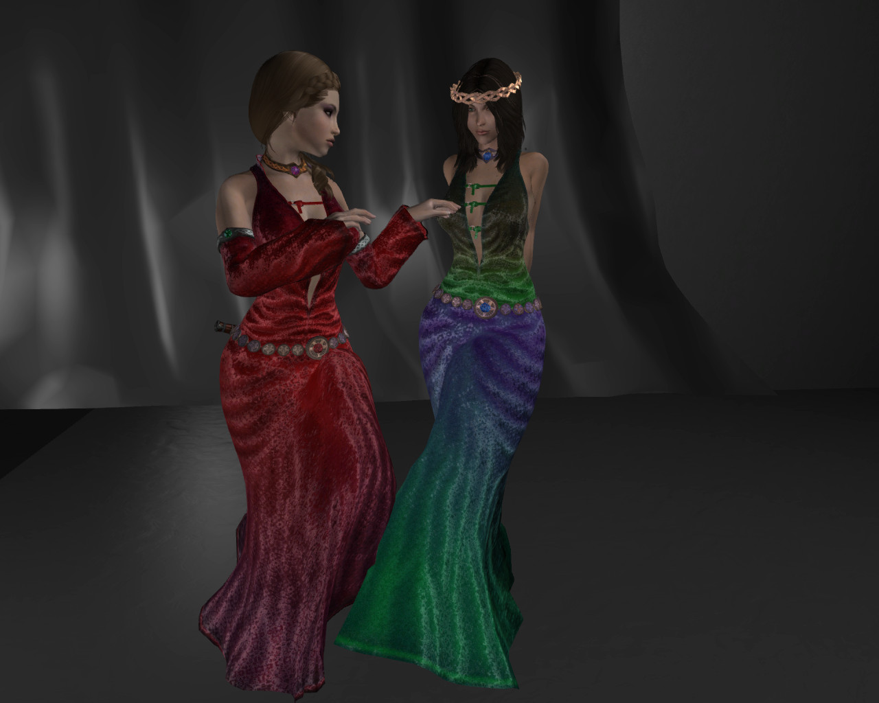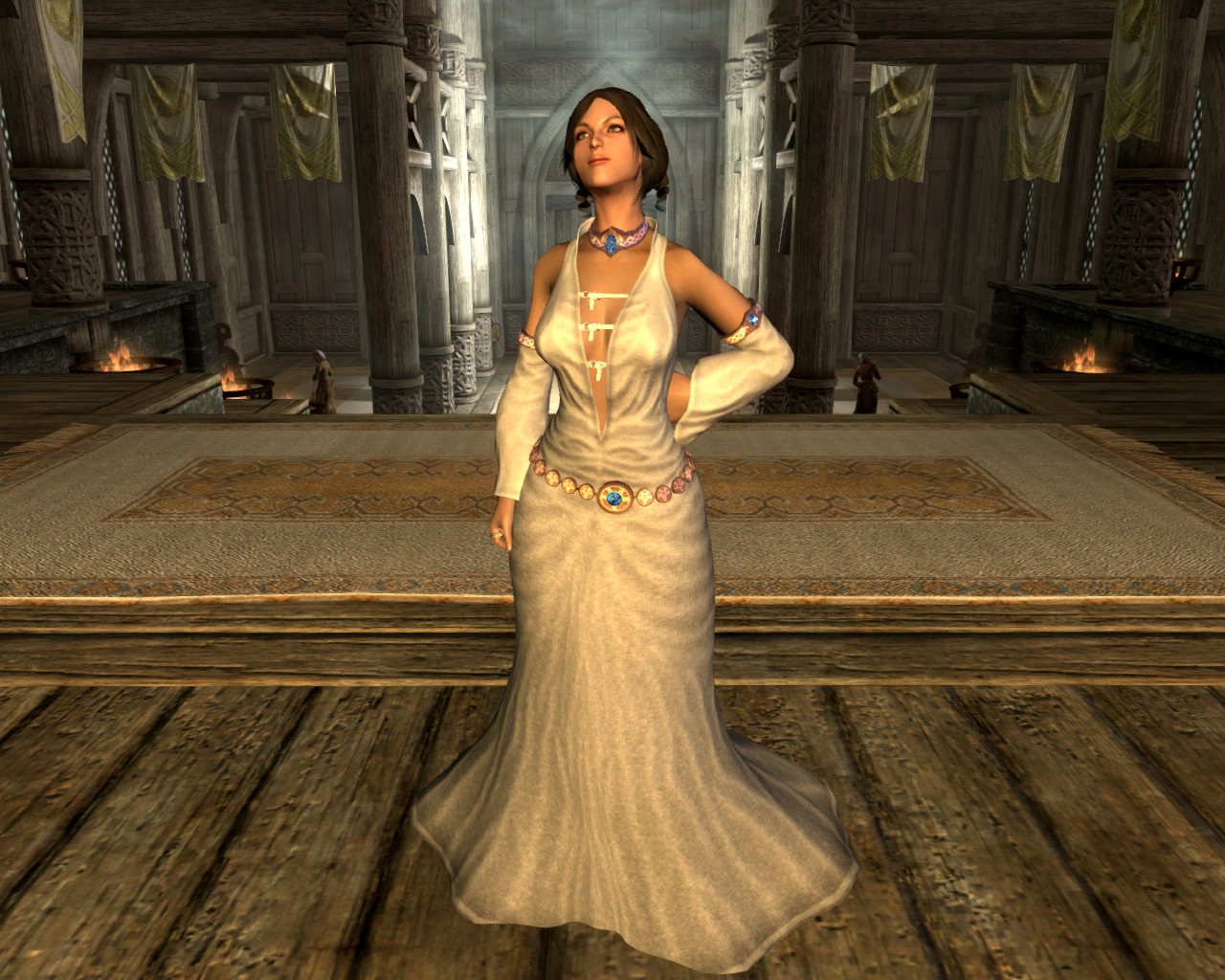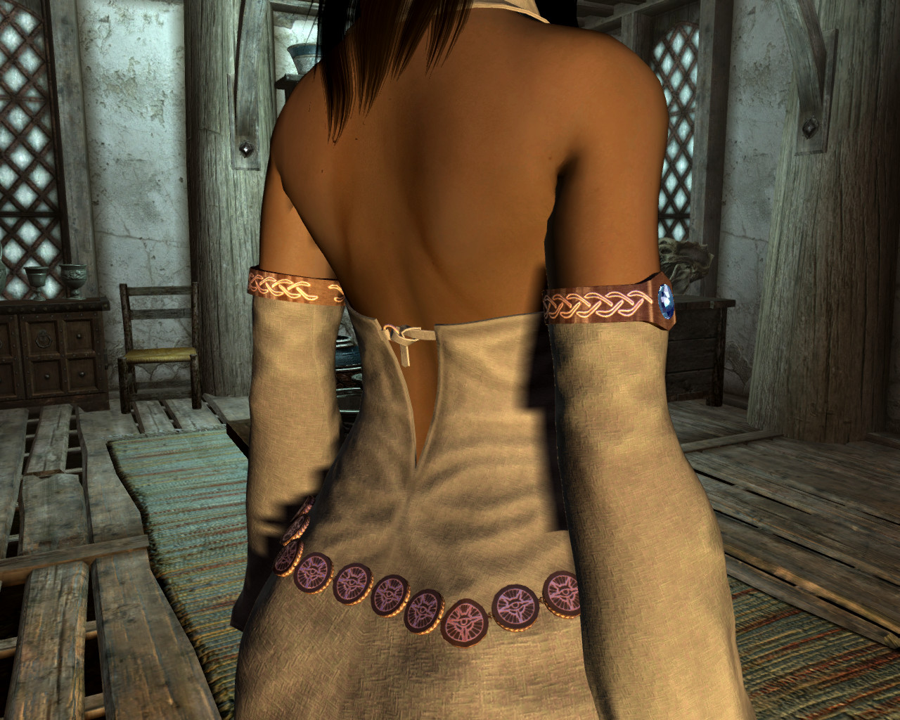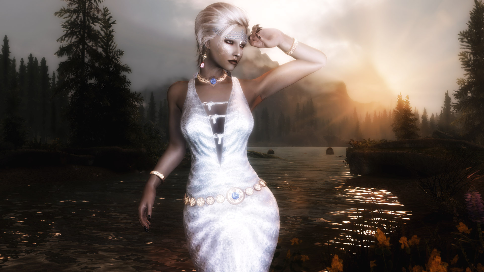 Я так понимаю, автор, решив избавиться от клиппинга ног с подолом, поступил радикально - убрал ноги. Блестяще. Уж лучше бы оставил. Хрен с ним, с клиппингом, для статичных скриншотов вполне сойдет.