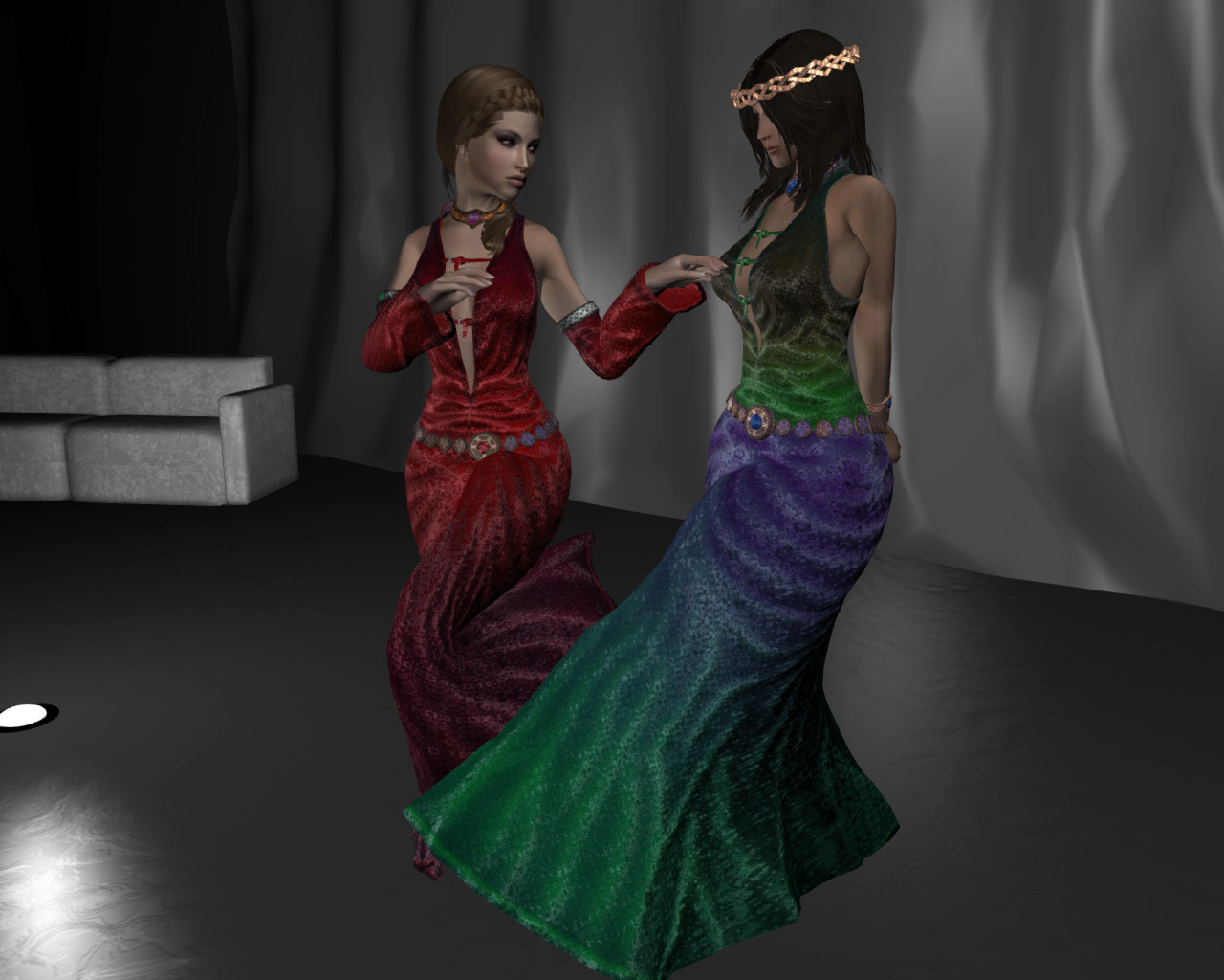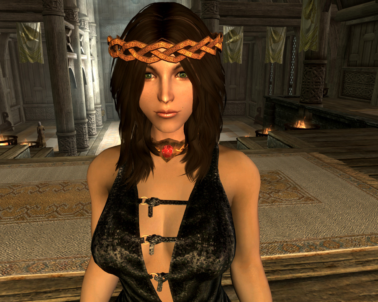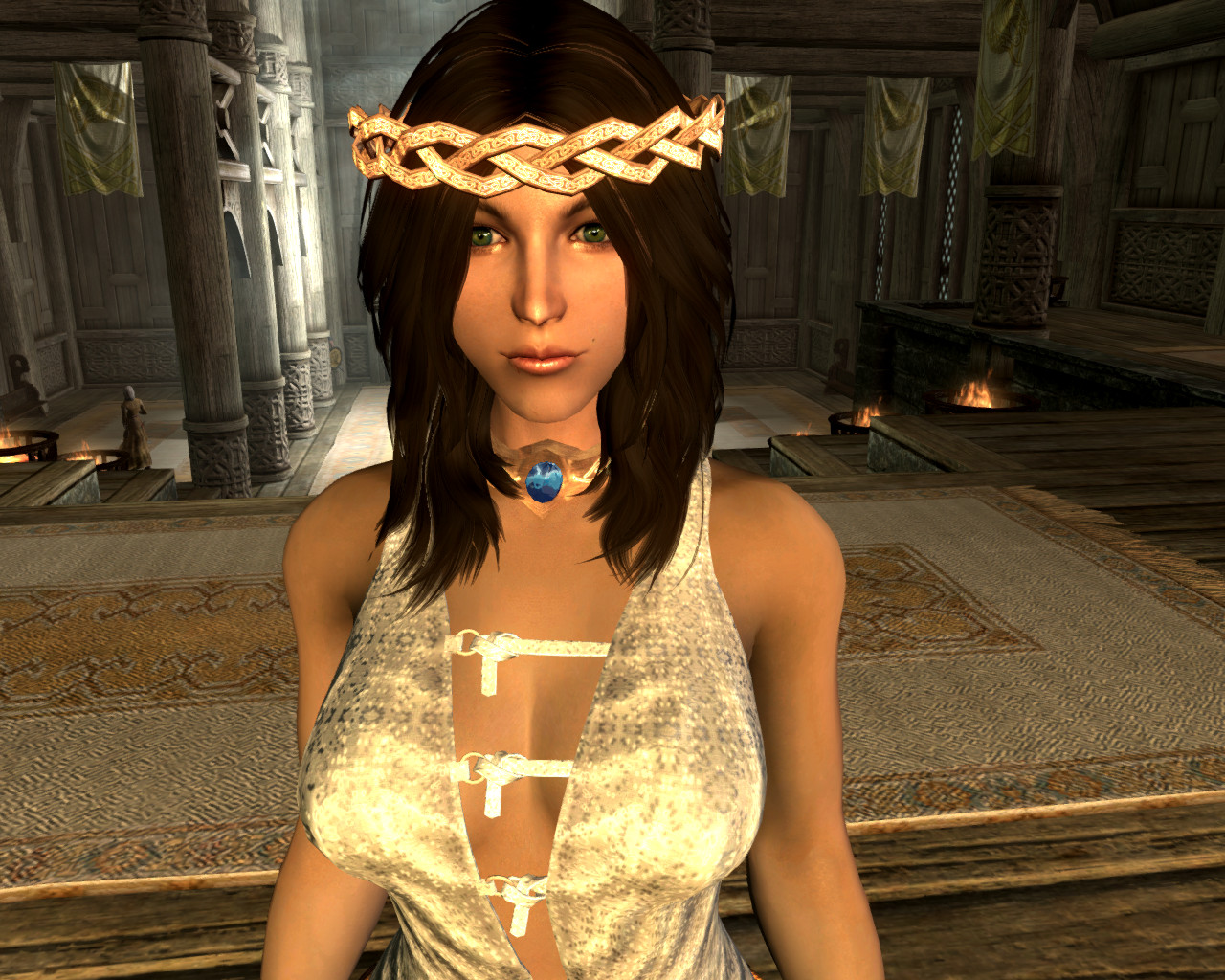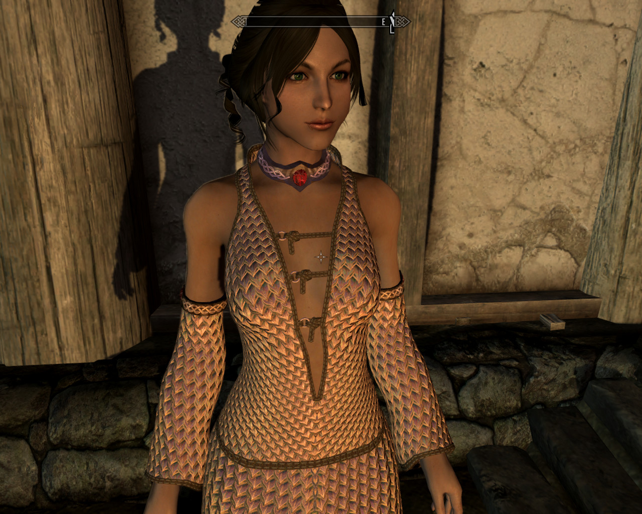 Я так понимаю, автор, решив избавиться от клиппинга ног с подолом, поступил радикально - убрал ноги. Блестяще. Уж лучше бы оставил. Хрен с ним, с клиппингом, для статичных скриншотов вполне сойдет.