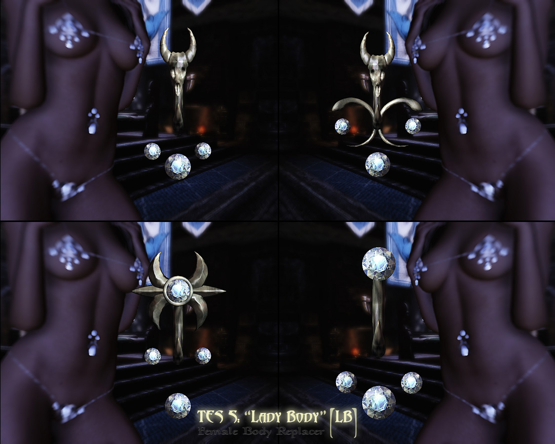 В целом, этот мод является исправлением и переделкой Lady Jewelry. Автор которого, уже давненько не показывается и по ходу дела - уже не планирует его переделывать. Раньше или позже, его все равно надо было править. Словом - решила его довести до играбельного состояния. Исправила скин (больше сережки не деформируются при повороте головы), все крафтится, зачаровывается и является украшением а не броней. За одно добавила несколько новых моделей - в мод вошло: