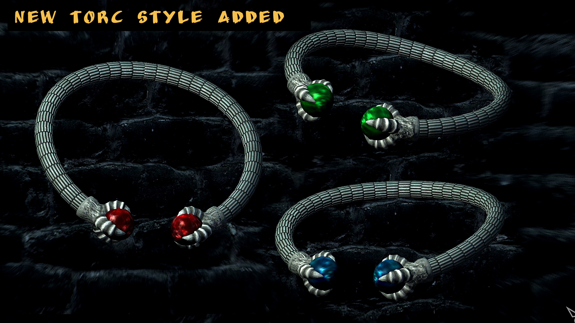 Мод добавляет в игру коллекцию торков (нашейных украшений) из разных металлов и в разном стиле для женских и мужских персонажей