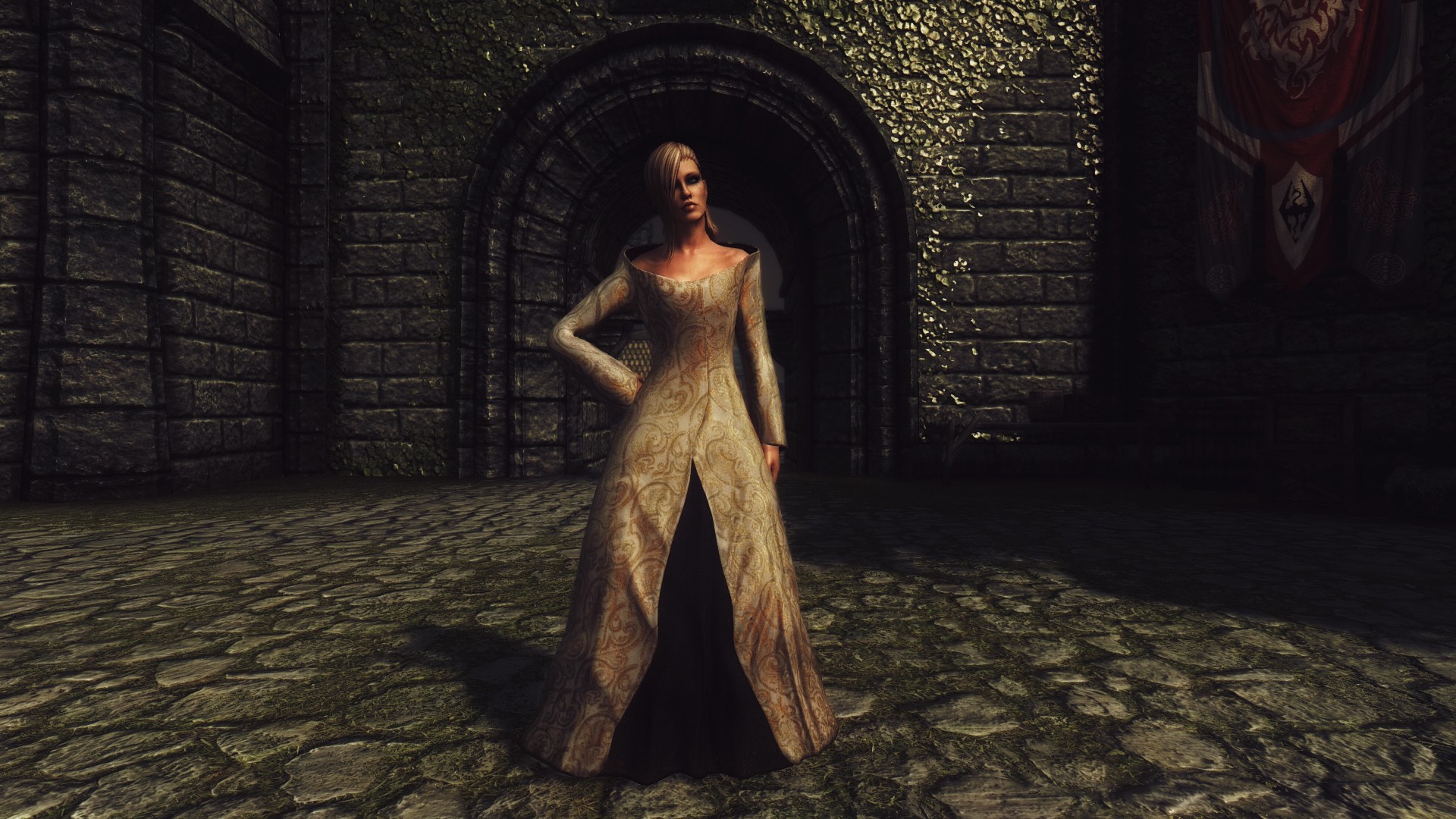 Мод добавляет в игру 2 новых красивых женских платья, которые вы сможете купить в магазине "Сияющие одежды".