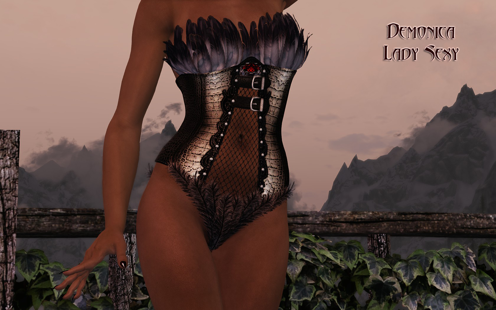 Адаптация «Lady Sexy» для Lilith. В мод входит: украшенный перьями корсет, трусики из перьев, открытый корсет, ботфорты, различные шорты, белый боди, накидки и топики. Требования: Skyrim, Dawnguard, Dragonborn, Demonica