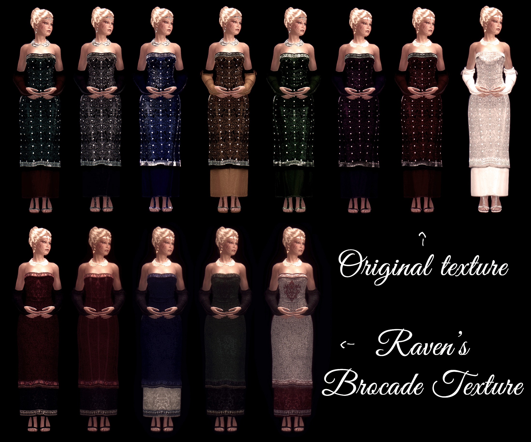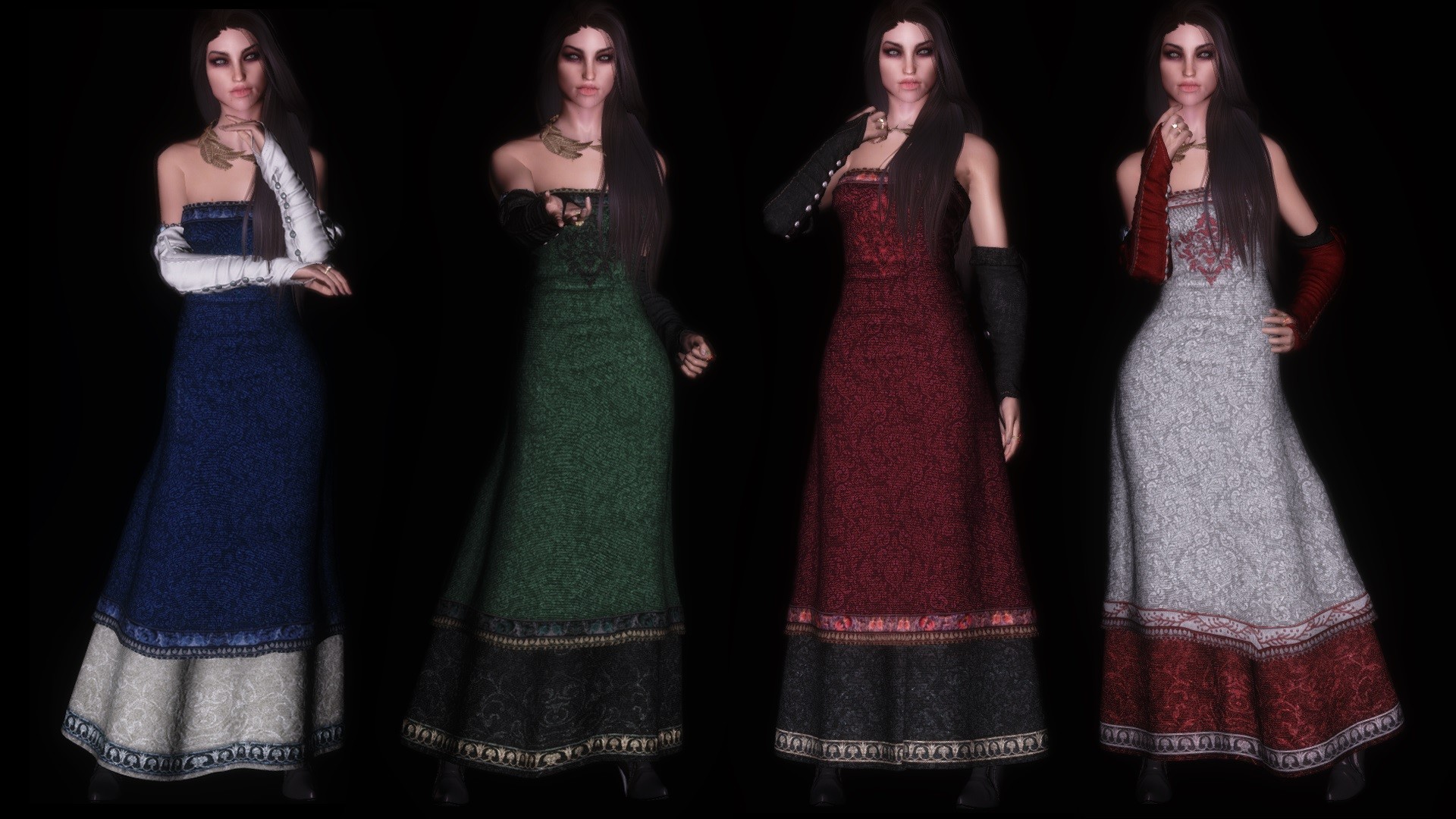 Мод добавляет в Скайрим платье Трисс прямиком из Ведьмака 3, а также митенки, ожерелье, серьги и обруч. Это одежда, потому не имеет защитных показателей подобно броне. Все предметы вы сможете купить в магазине "Сияющие одежды", что в Солитьюде, митенки, сандалии и платье также можно создать на дубильном станке.
