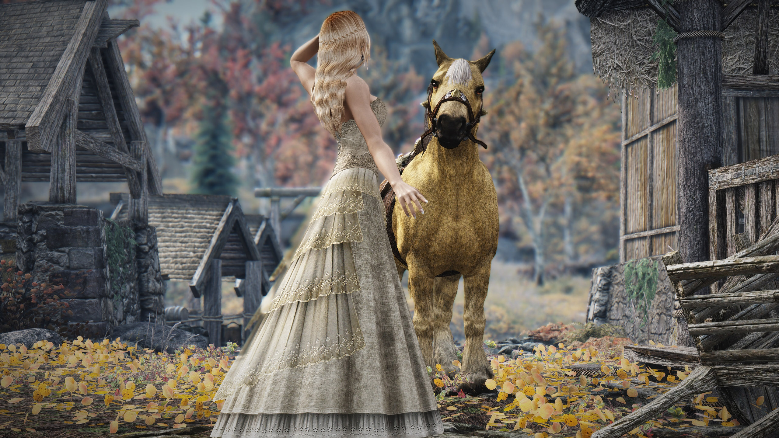 - Анимация юбок стандартная. Я не использую встроенные физические движки на моделях, ибо на мой взгляд они ведут себя немного неадекватно. Так как физический движок Cкайрима не поддерживает анимацию длинных юбок - претензии к анимации не принимаются.