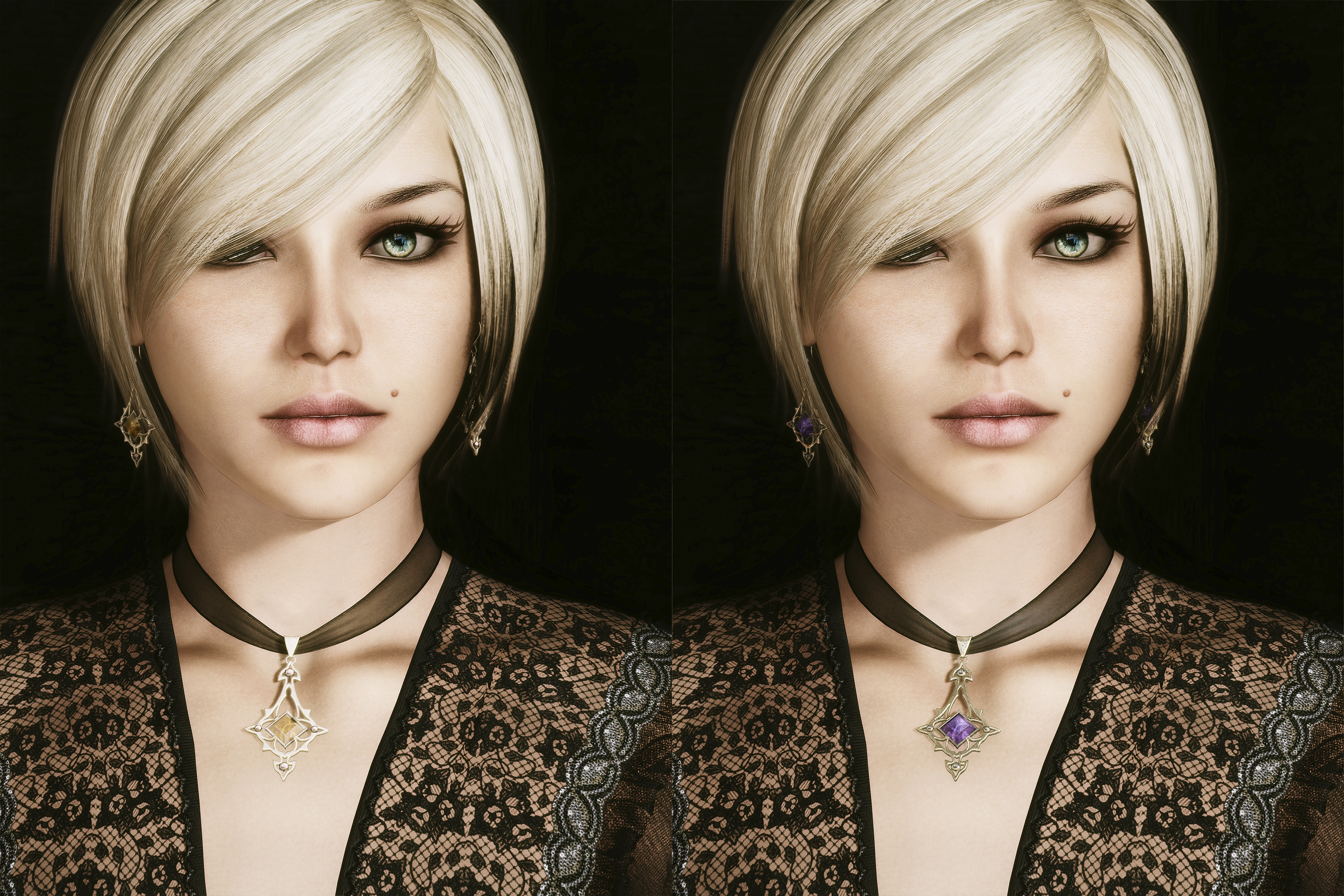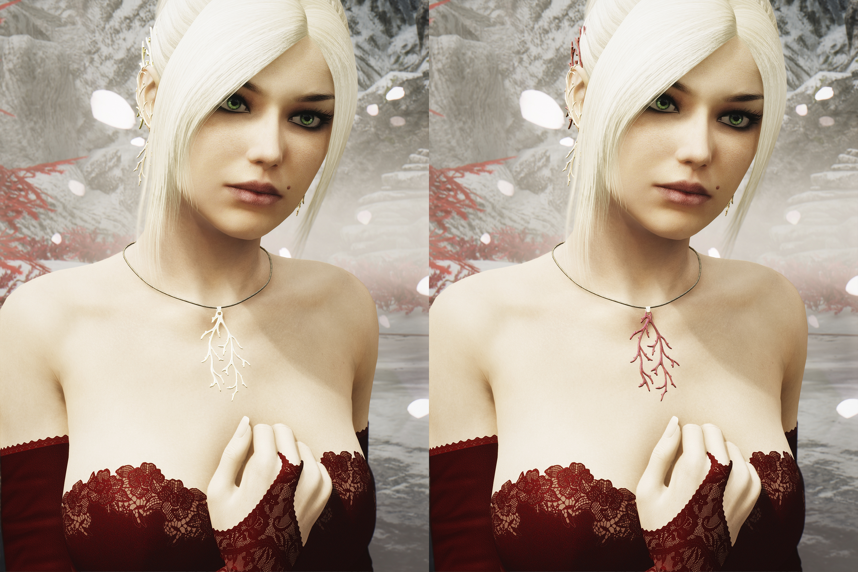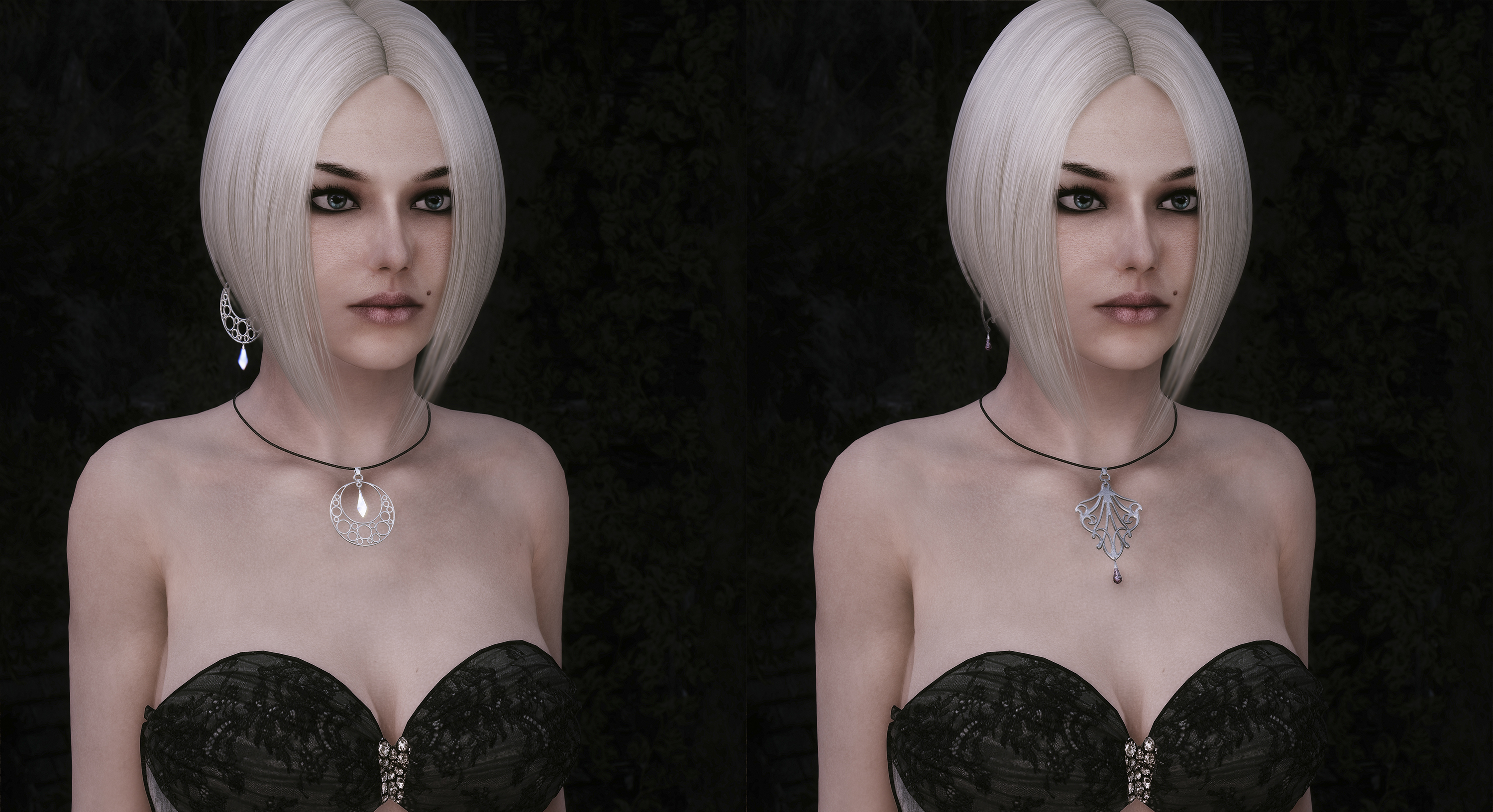 Поскольку амулеты подогнаны очень близко, на Лилит вы, хоть и сможете их надеть (я решила не выключать эту возможность), носить так не получится. Что касается кафф, то здесь нужно внимательно выбирать прическу...