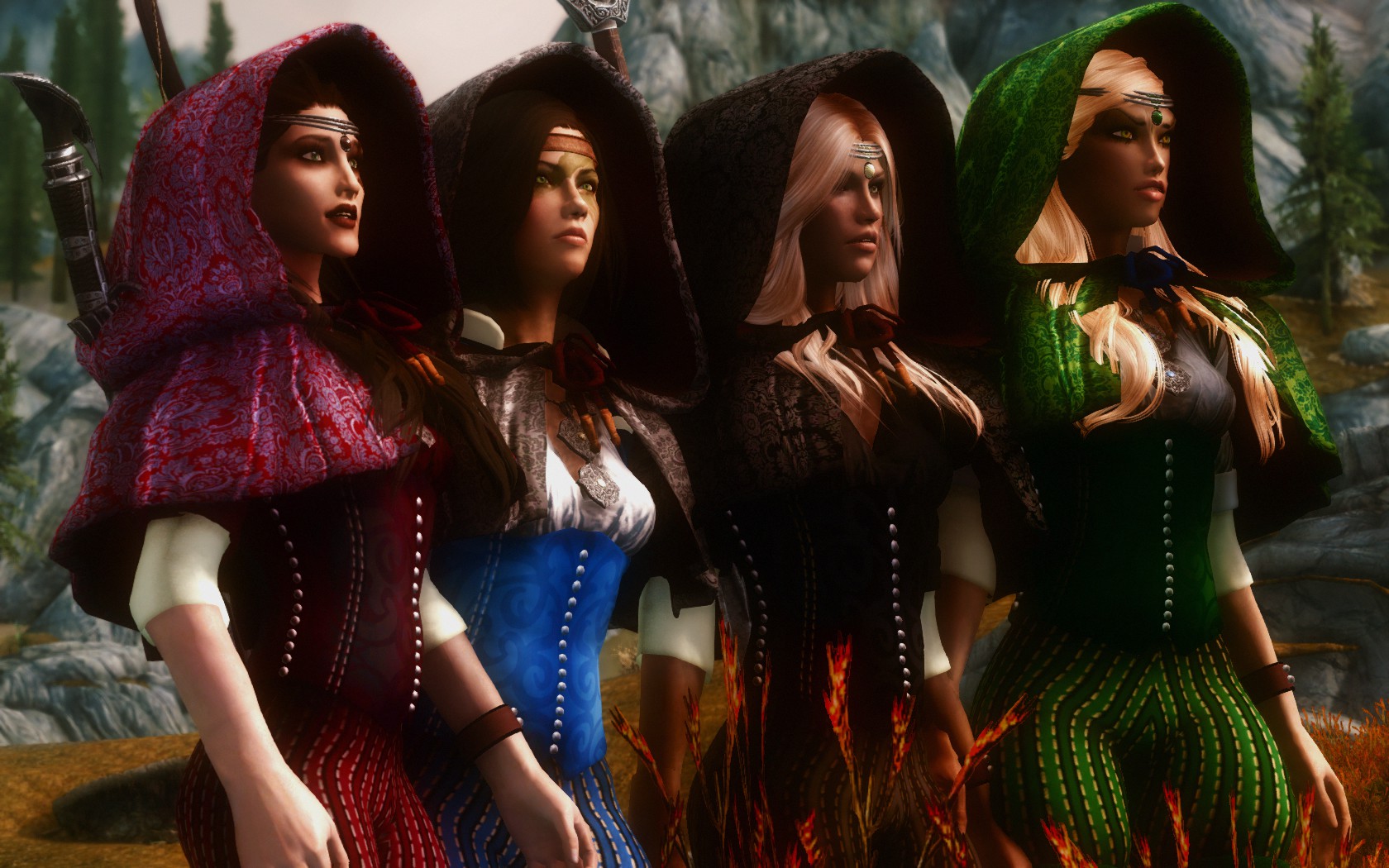 Модификация добавляет в игру капюшоны различных цветов. Все они выполнены очень красиво и качественно. Их можно зачаровывать и улучшать. Занимает слот 45 и имеет класс легкой брони. Главное их достоинство, что персонаж "не лысеет", надевая их.