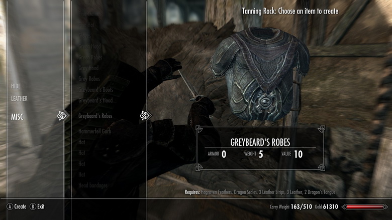 * Изготавливаемая одежда со всего Скайрима.