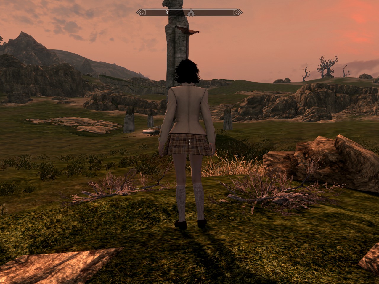 - ENB и разного рода графических наворотов нет(Кроме текстуры кожи для персонажа), так что на чистом Skyrim с UNP должно выглядеть примерно так.
