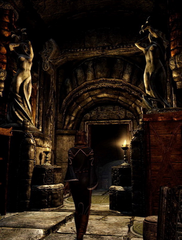 * Альтернативная версия - заменит всю одежду жриц Дибеллы на одежду Ноктюрнал, кроме Сенны. Это та что стоит на верхнему этаже храма и возносит молитвы у статуй.