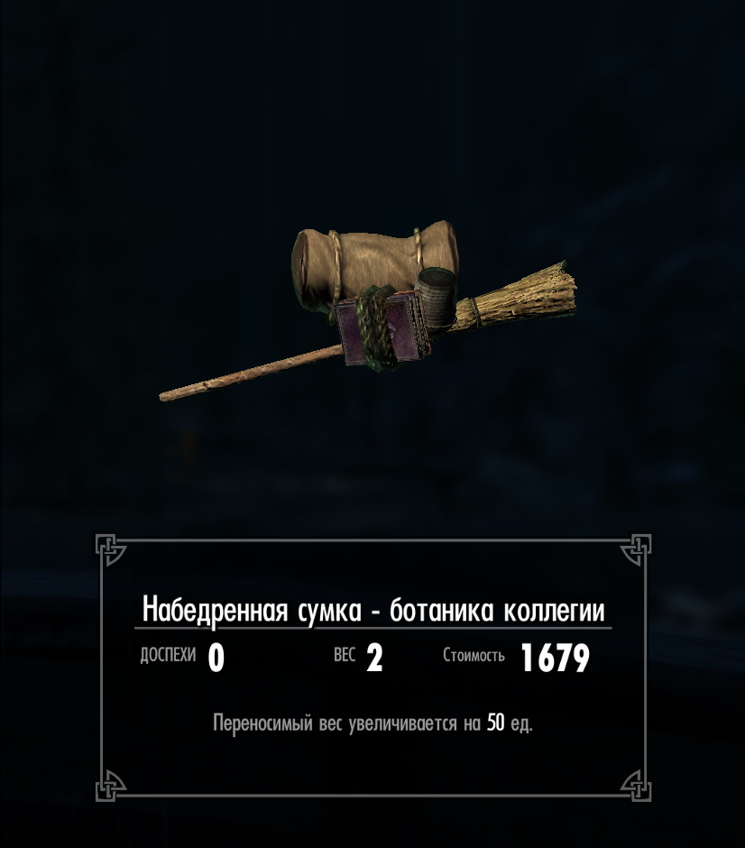 * Мод добавляет в Skyrim LE, восемь потрясающих лорных набедренных сумок.