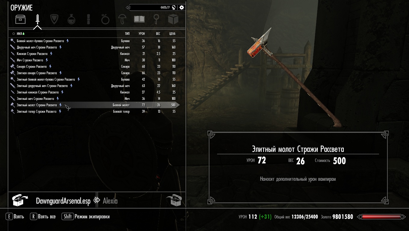 — Изменены чары оружия. Раньше оно наносила +5 урона вампирам, теперь же +20 (кроме кинжалов). Кинжал вызывает эффект кровотечения;