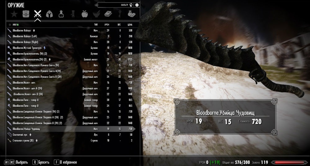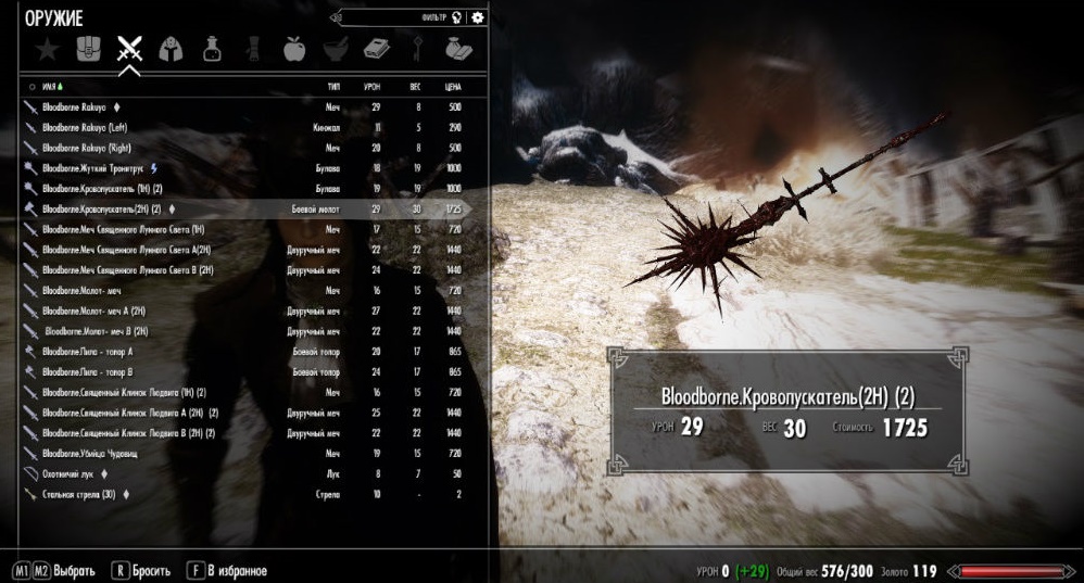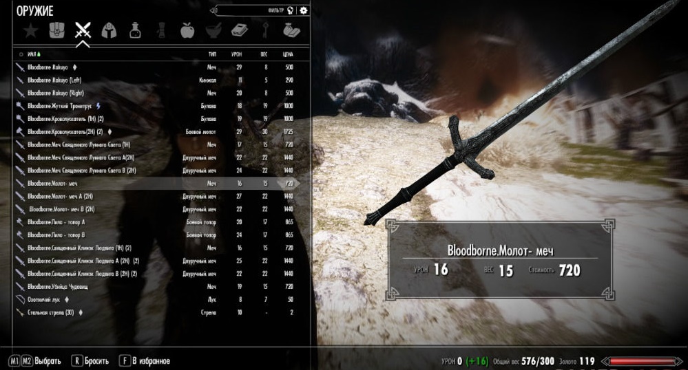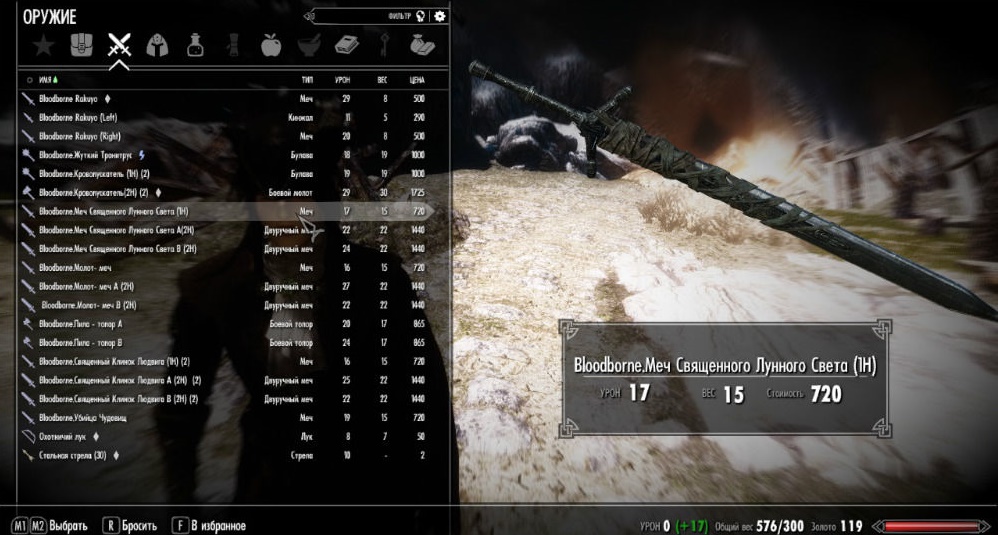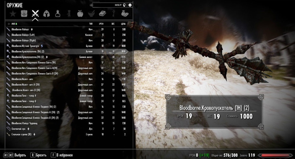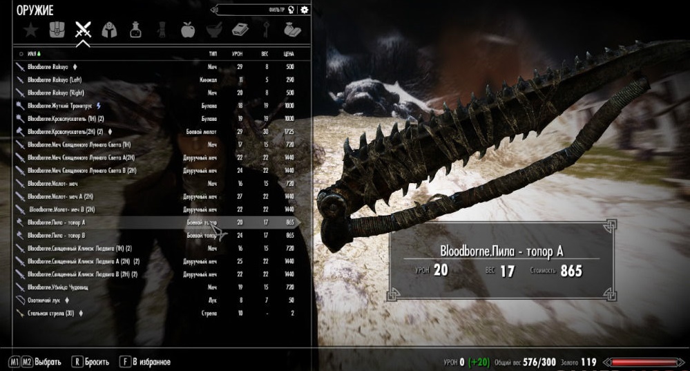 Мод предлагает вашему вниманию небольшой арсенал из вселенной игры Bloodborne для игры Skyrim LE.