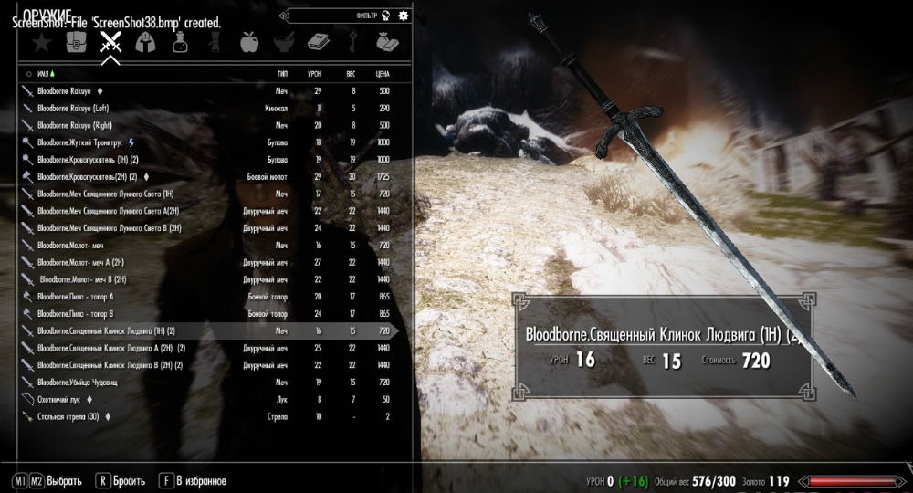 - Bloodborne.Меч Священного Лунного Света А 2Н (урон - 22, не отображается в инвентаре)